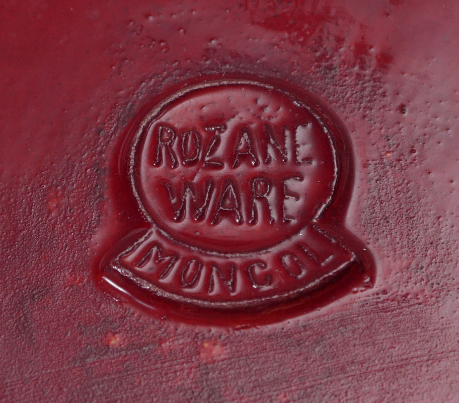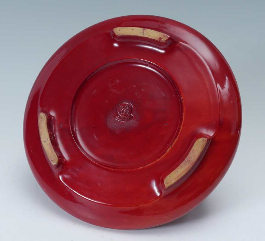 ROSEVILLE ROZANE MONGOL SQUAT FORM VASE: Roseville Rozane Mongol three handle vase in the copper red glaze. Award winner at the 1904 St. Louis World's Fair. Impressed and raised Rozane Mongol wafer mark. Measures approx. 5'' high x 11'' overall diameter.