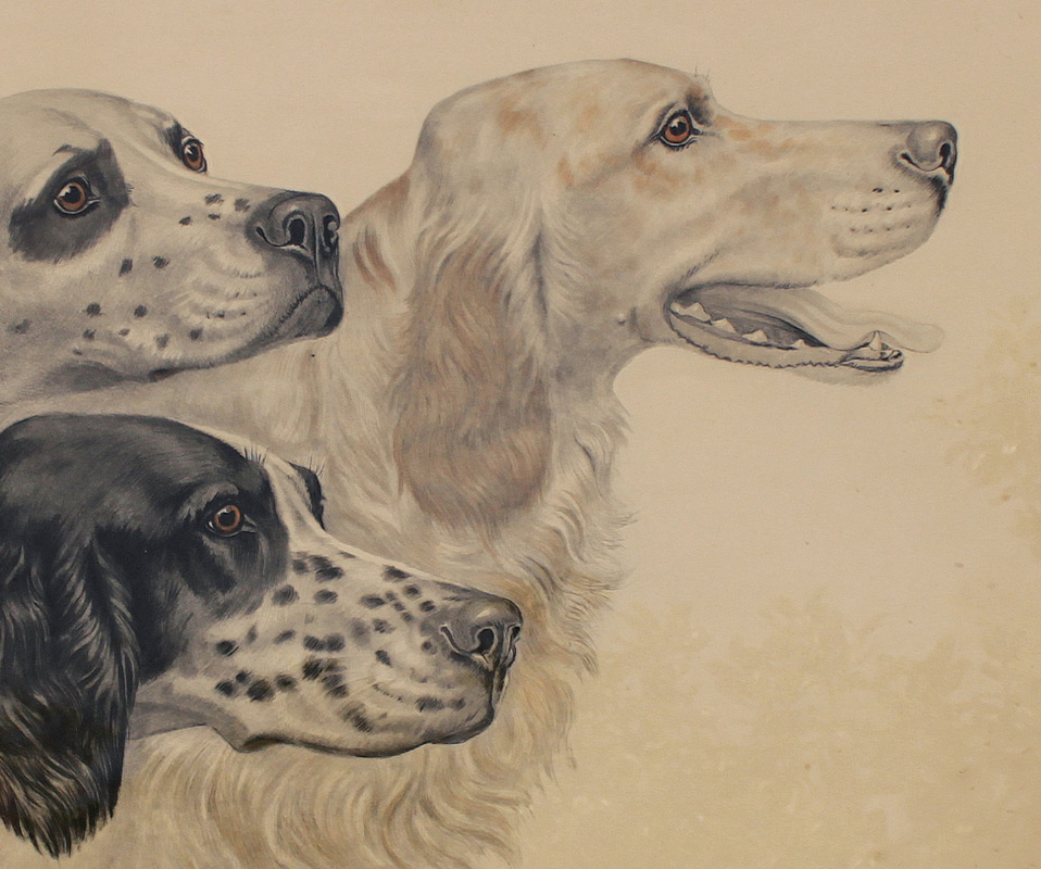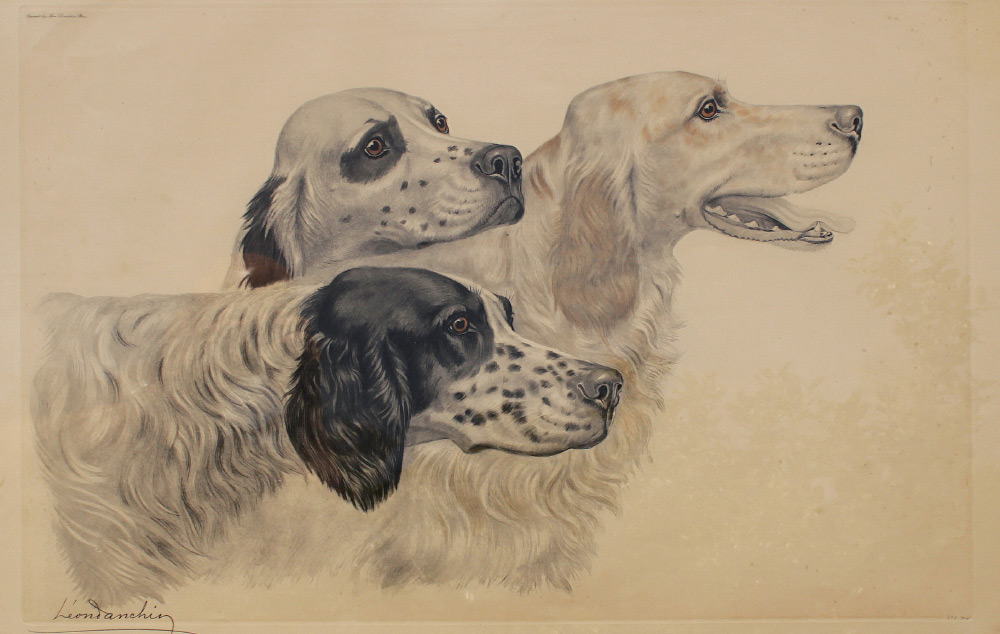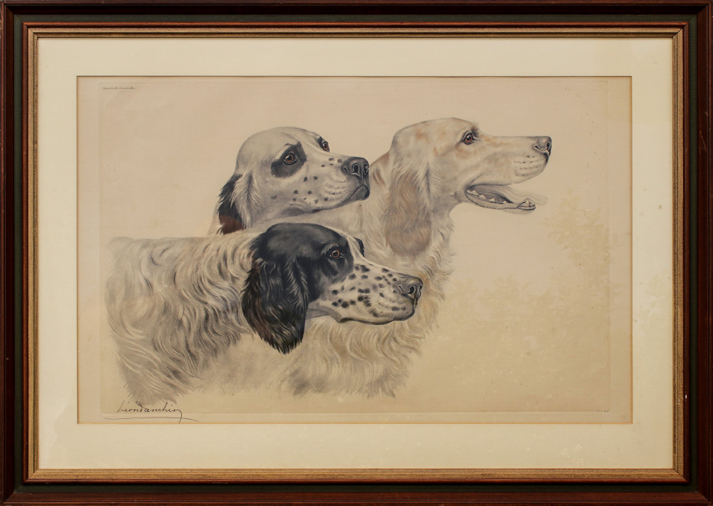 DANCHIN, Leon, (French, 1887-1939): Three Hunting Dogs, Color Etching, sight size 19 1/4'' x 30 1/2'', pencil signed and numbered 228 of 500 lower right, framed, 29'' x 39''.