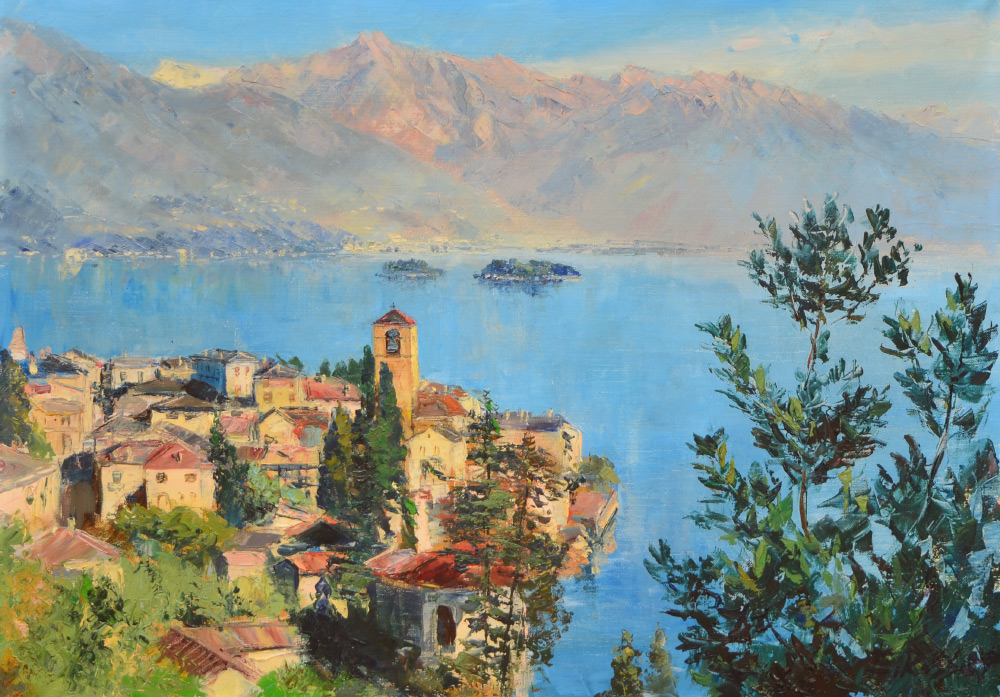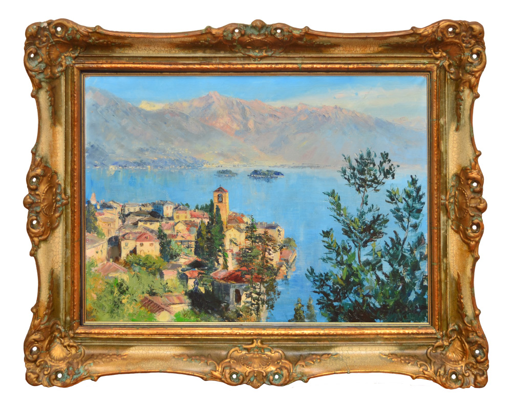 ROSSET, E., (Swiss, 20th Century): Lake Maggiore, Oil/Canvas, sight size 18 1/2'' x 26 1/2'', signed lower right, carved and painted gesso frame, 26 1/2'' x 34''.