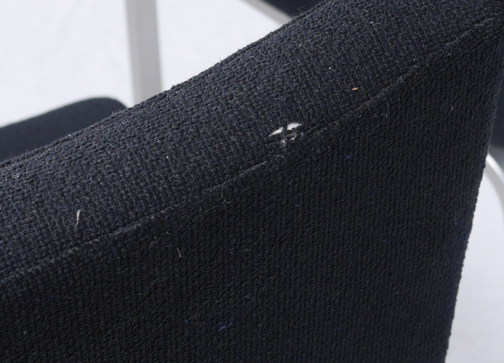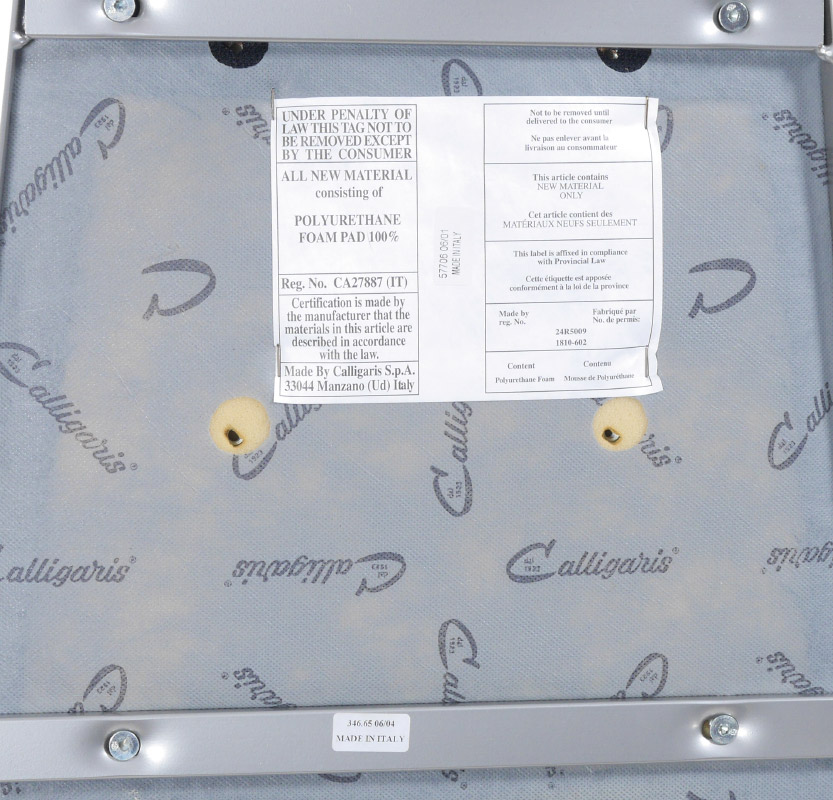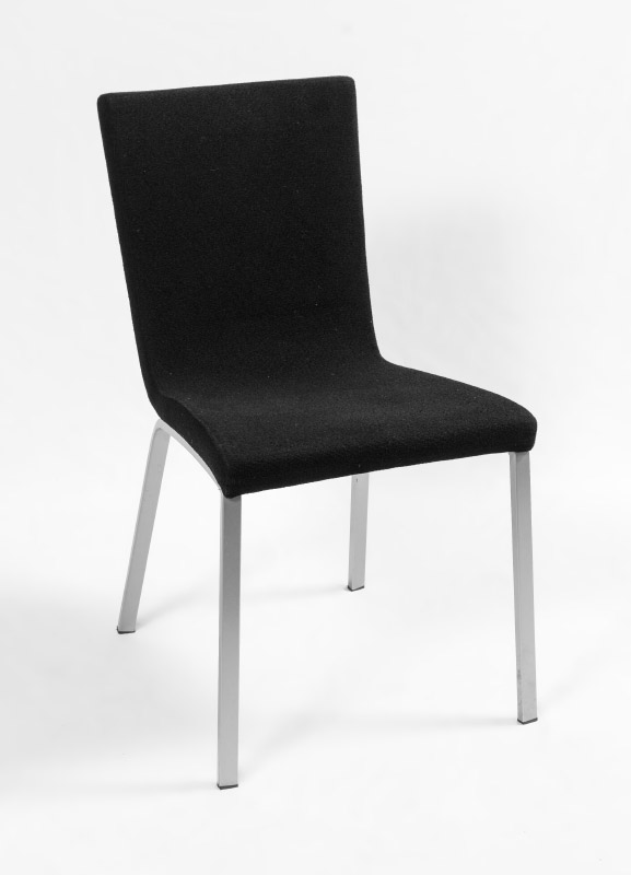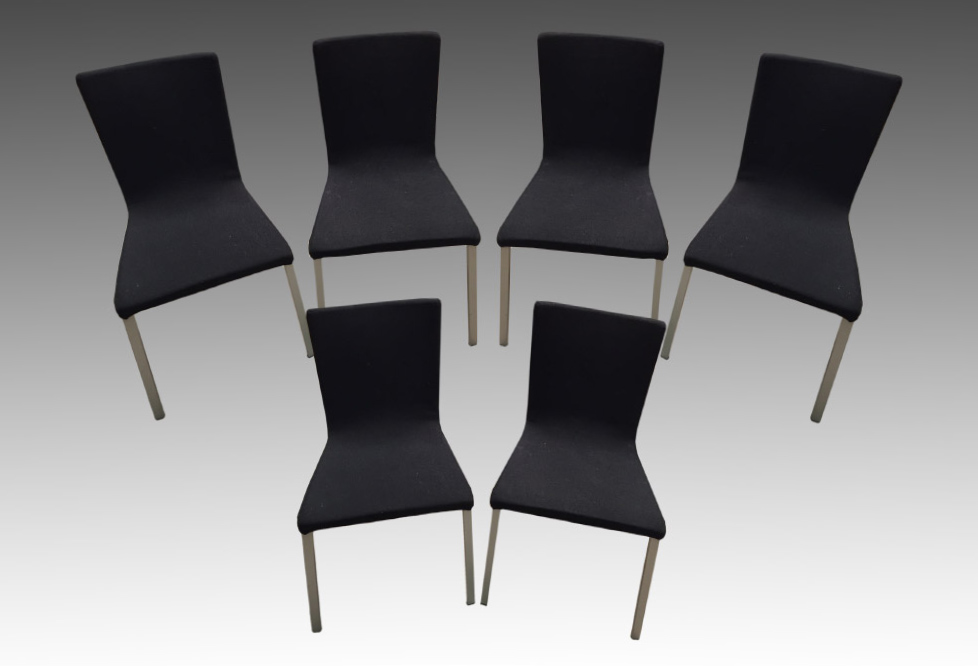 6 ITALIAN CALLIGARIS MODERN SIDE CHAIRS: Black cloth upholstery with grey powder coated legs, overall measures 33 1/4'' h. x 17 3/4'' x 23''.