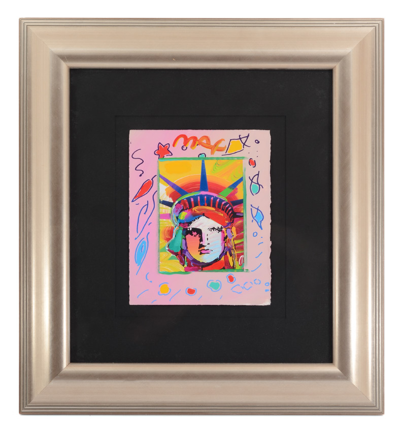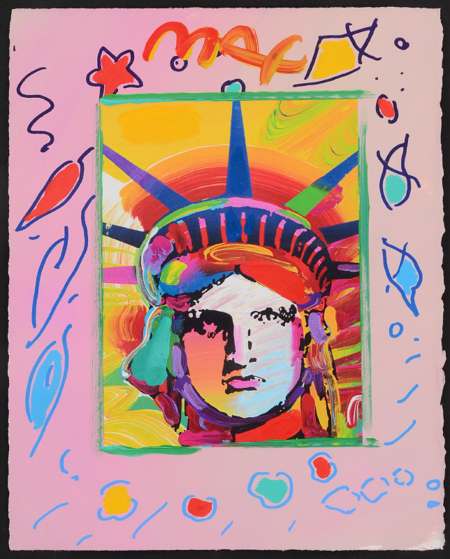 MAX, Peter, (American, 1937- ): Liberty Head Collage, sight size 10 1/4'' x 8 1/4'', signed, framed, 24'' x 21 1/2''.