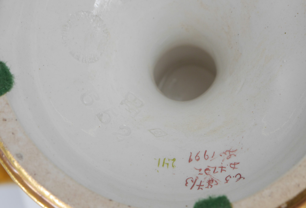 CONDITION: Approx. 2 1/4'' crack from rim into neck, crazing all over.