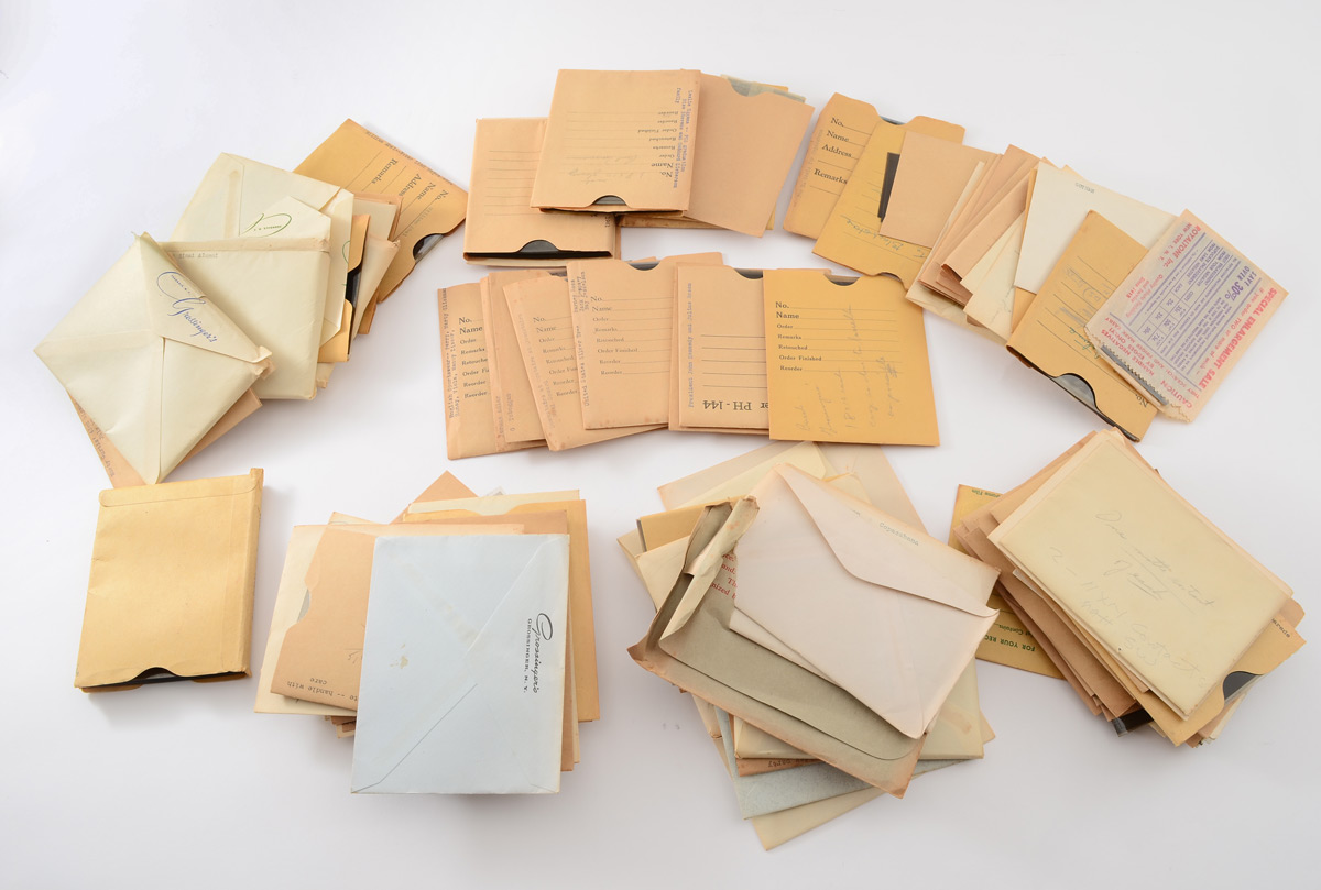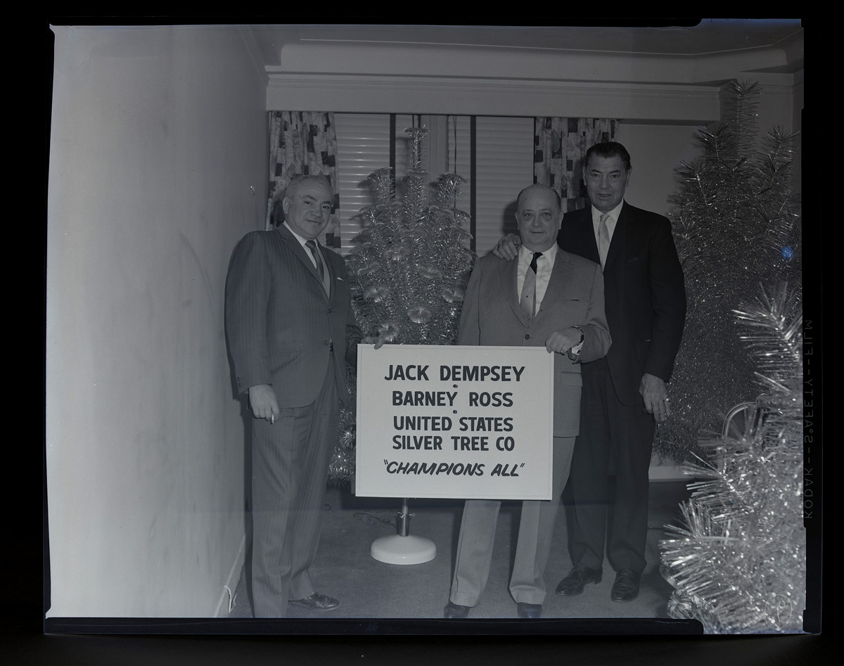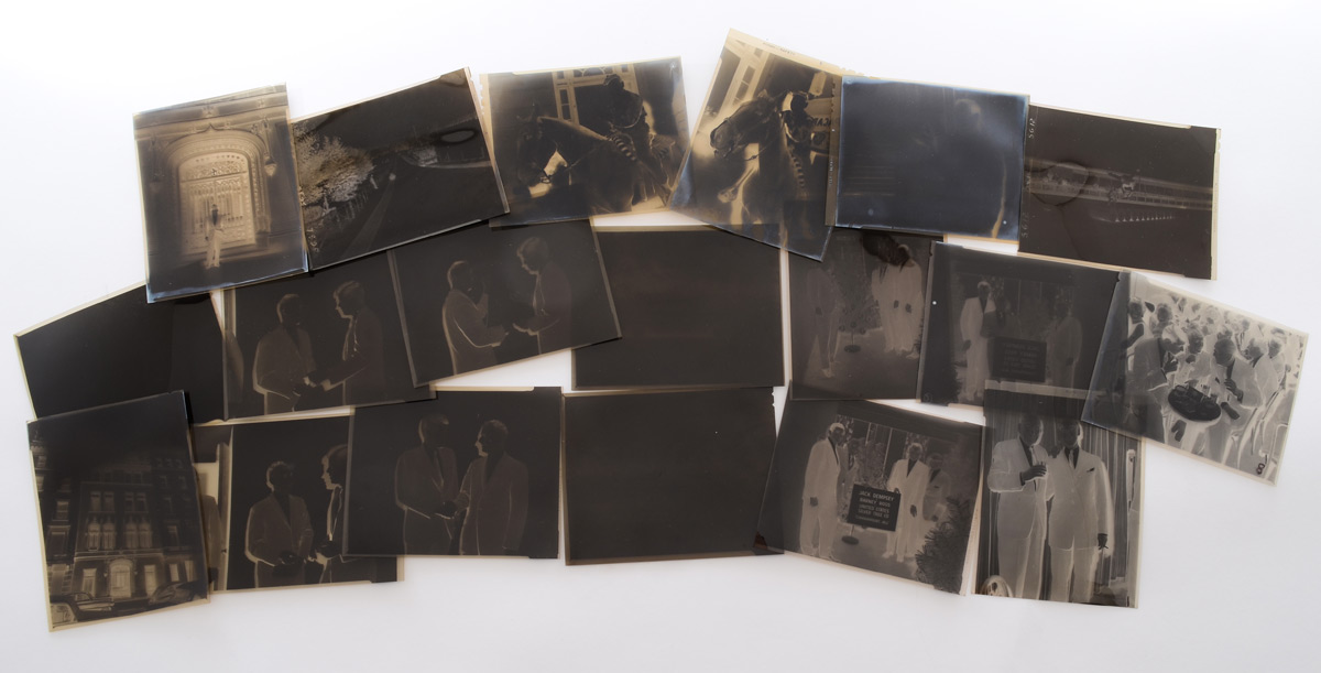 COLLECTION OF PHOTO NEGATIVES WITH JOHN F. KENNEDY: A large collection of photo negatives, many from Grossinger's Hotel in New York, others to include 4 undocumented photos of John F. Kennedy with Julius Rosen, Jack Dempsey and Barney Ross, Noel Coward, Marty Glickman and more. Many of the Grossinger's photos are typical bar mitzvah, birthday, wedding type photos with some additional promotional photos. A grouping also appears to from an advertising agency in New York.