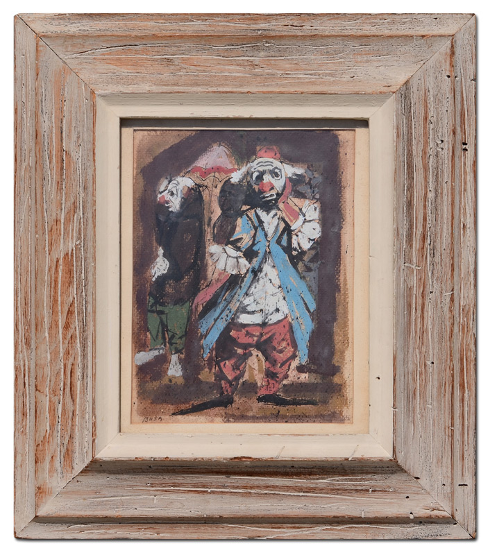 BOSA, Louis, (Italian/American, 1905-1981): ''Sad Sack'', Two Clowns, Gouache/Board, sight size 10'' x 8'', signed lower left, Frank Oehlschlaeger Gallery label affixed verso, original white washed frame, 16 1/2'' x 14''.