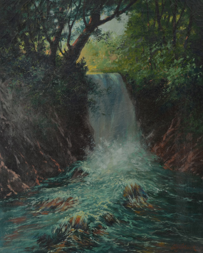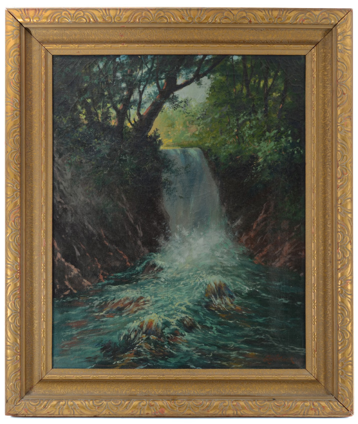 MAACK, George, (American, 1867-1936): Waterfall and Stream in the Forest Wood, Oil/Canvas, sight size 27'' x 22'', signed lower right, framed, 34 1/2'' x 29 1/2''.