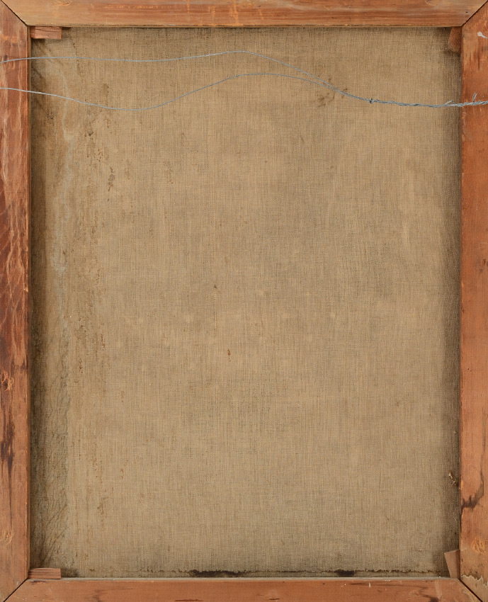 CONDITION: Frame is slightly warped and does show signs of wear, canvas has scattered craquelure and needs cleaning.