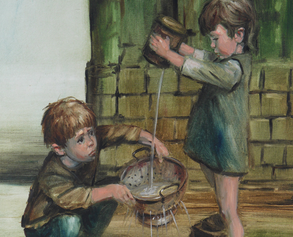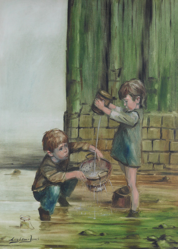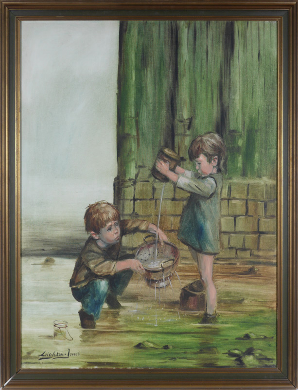 LEIGHTON-JONES, Barry, (British, 1932- ): ''Catching Tadpoles'', Oil/Canvas, sight size 40'' x 30'', signed lower left, framed, 44 1/2'' x 34 1/4''.