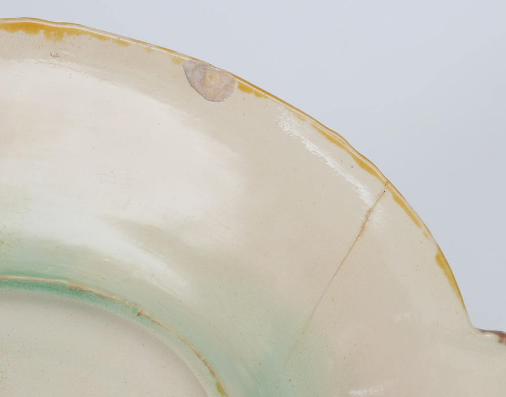 CONDITION: All with crazing, the 9 1/4'' plate with chips, one platter with a 3'' crack and under rim chip. Other minor chips may be discovered.