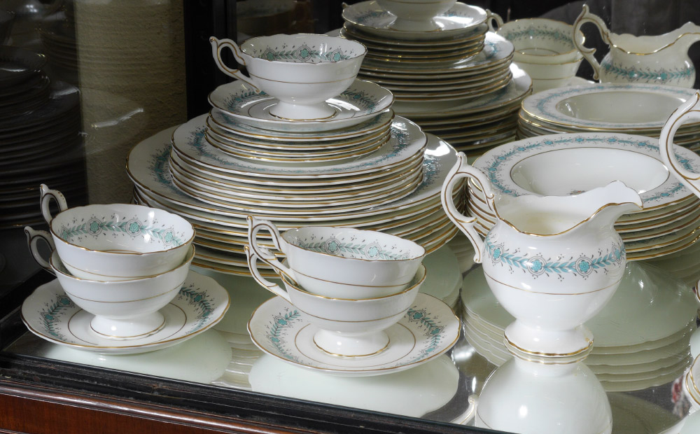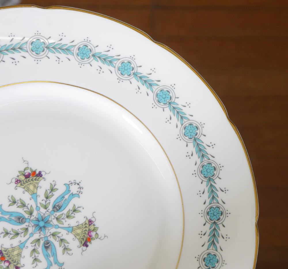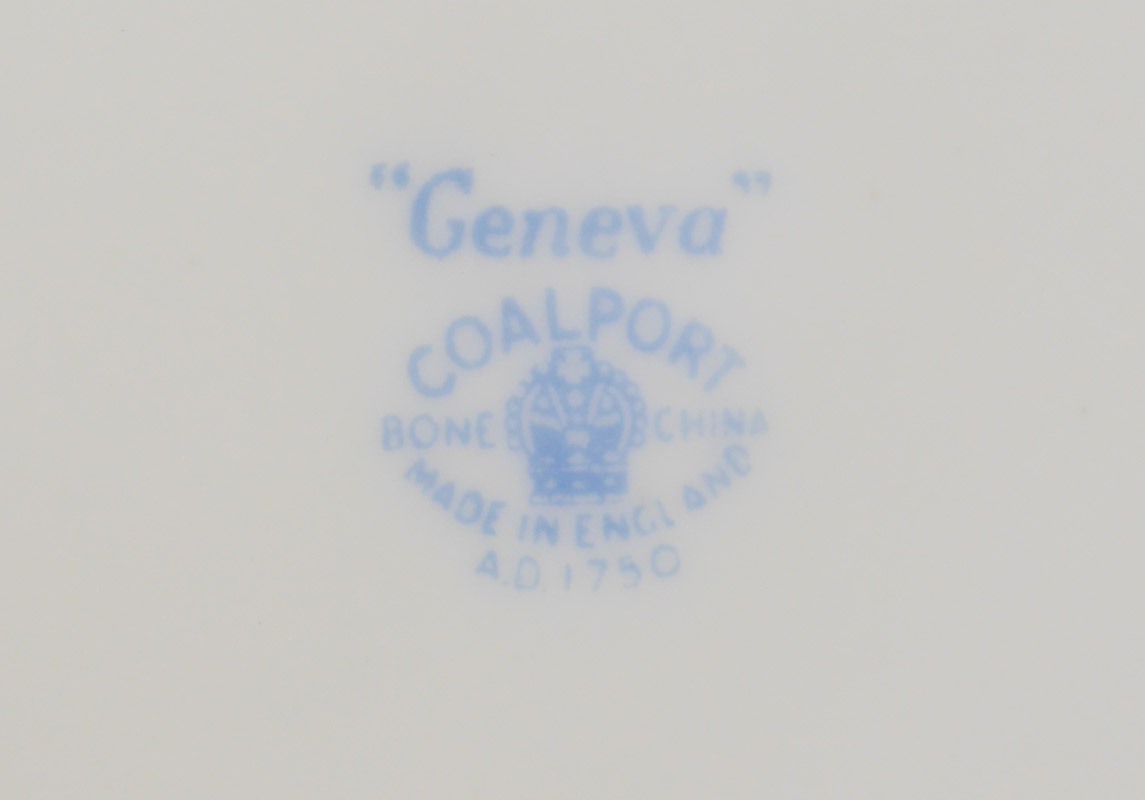 COALPORT ''GENEVA'' FINE CHINA: Approx. 75 pieces to include 14 dinner plates (11''), 12 salad plates, 8 bread plates, 12 soup bowls, 12 cups, 14 saucers, teapot, creamer and sugar.