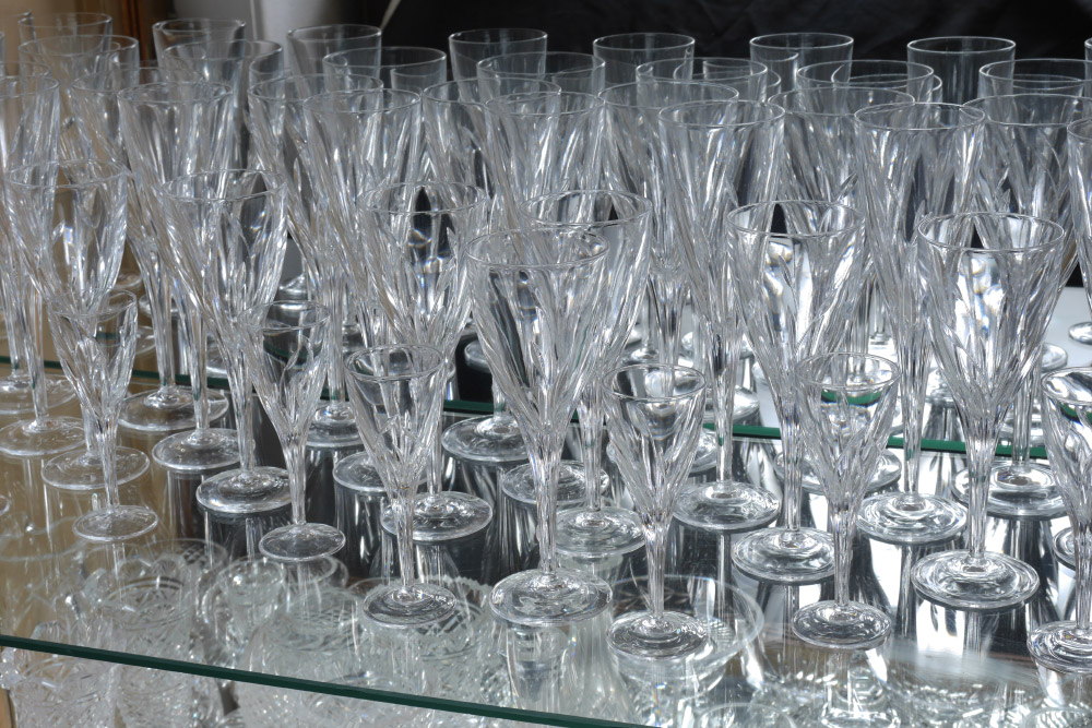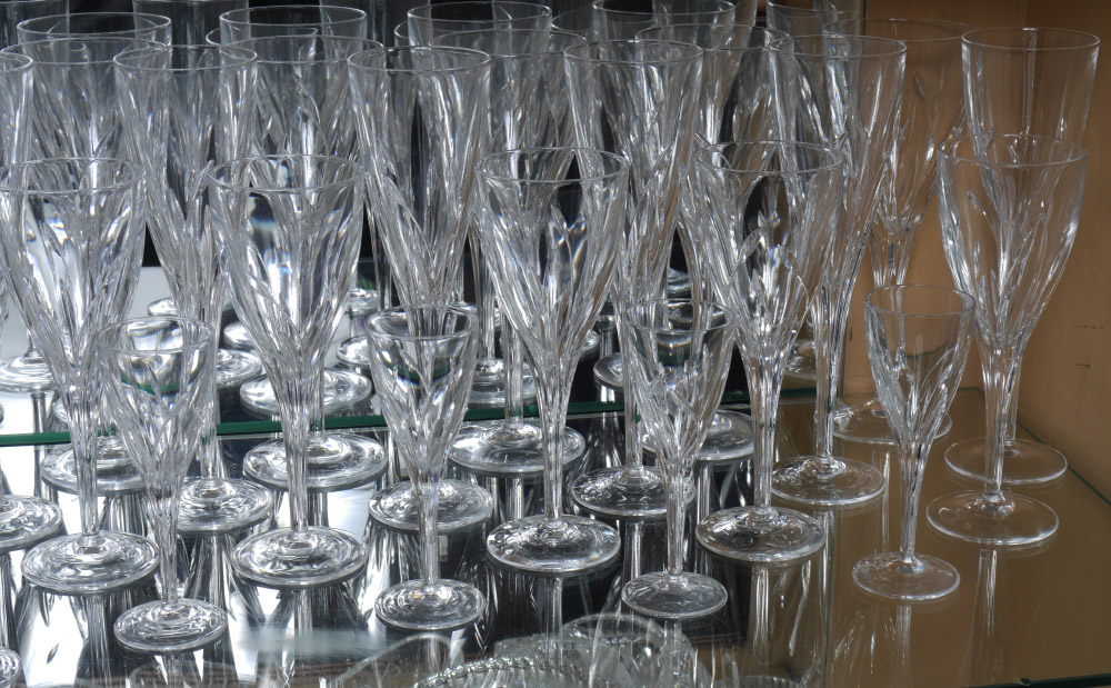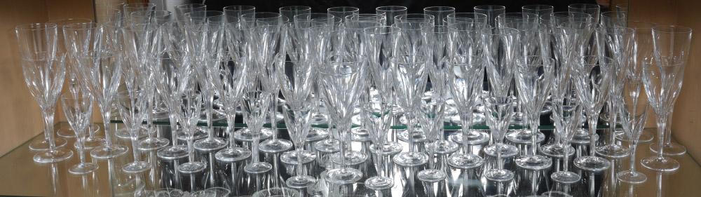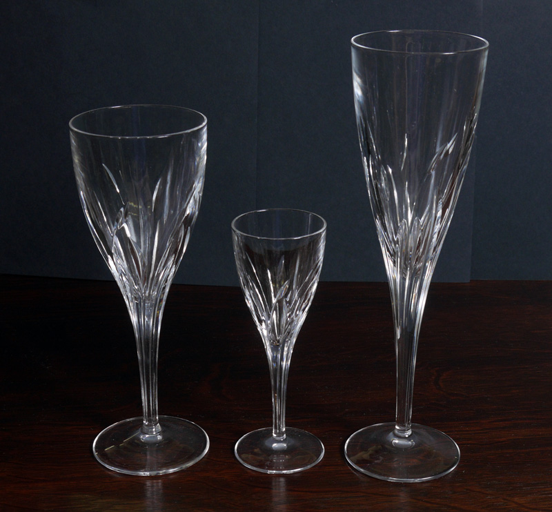CRISTAL D'ARQUES - DURAND ''PISTIL'' CRYSTAL STEMWARE: Approx. 45 pieces in the Pistil pattern by Cristal D'Arques - Durand to include 11 Water goblets (8 7/8''), 12 wine (7 1/2''), 12 champagne (9 ''), 10 cordials (5 1/4'').