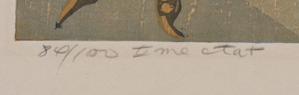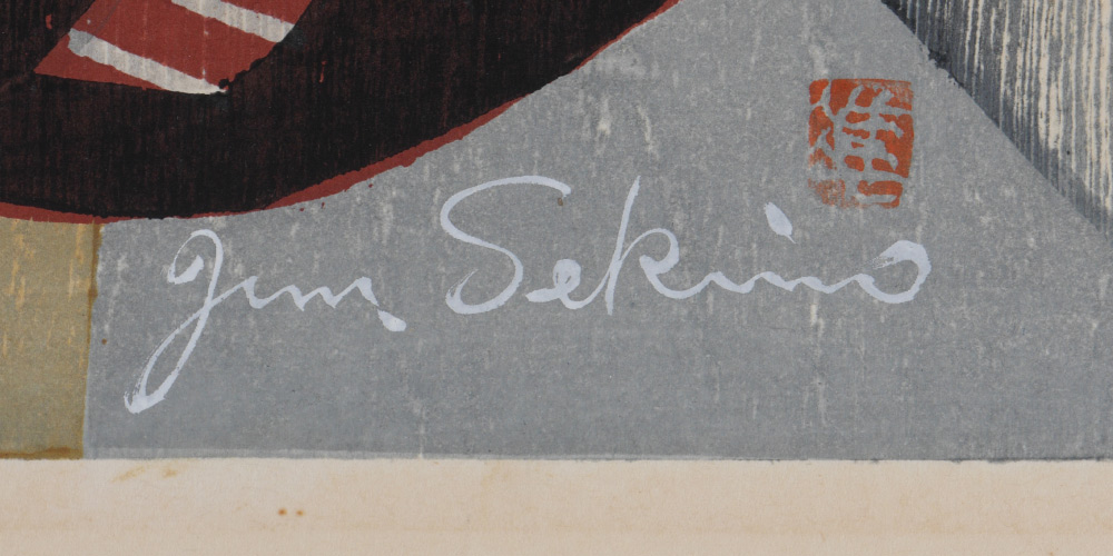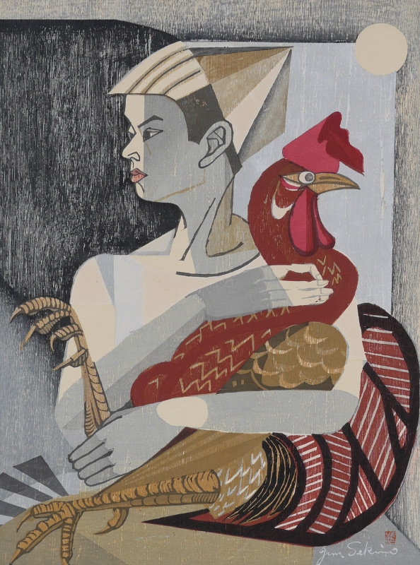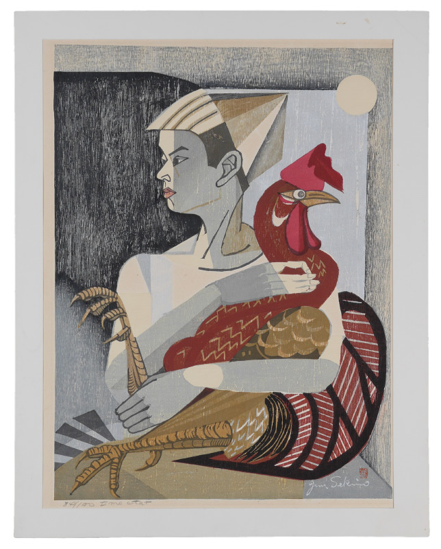 SEKINO, Junichiro, (Japanese, 1914-1988): ''Boy and His Rooster'', Woodblock, 1956, 80/100, image size 24 1/2'' x 18 1/5'', paper size 32'' x 25''.