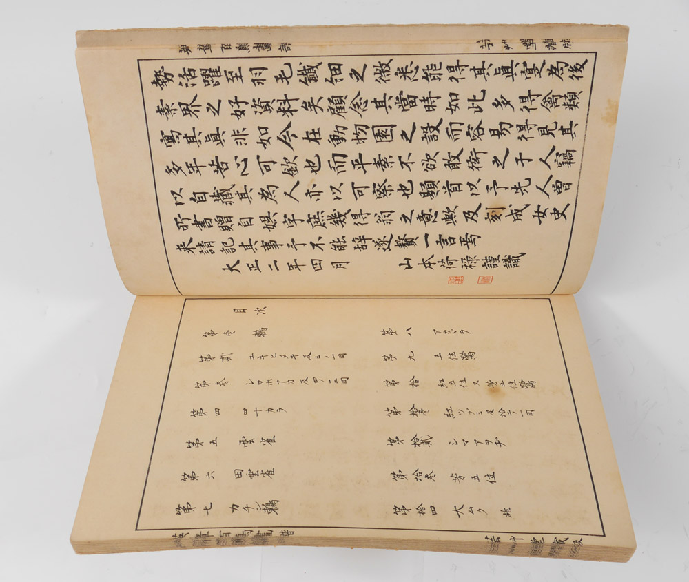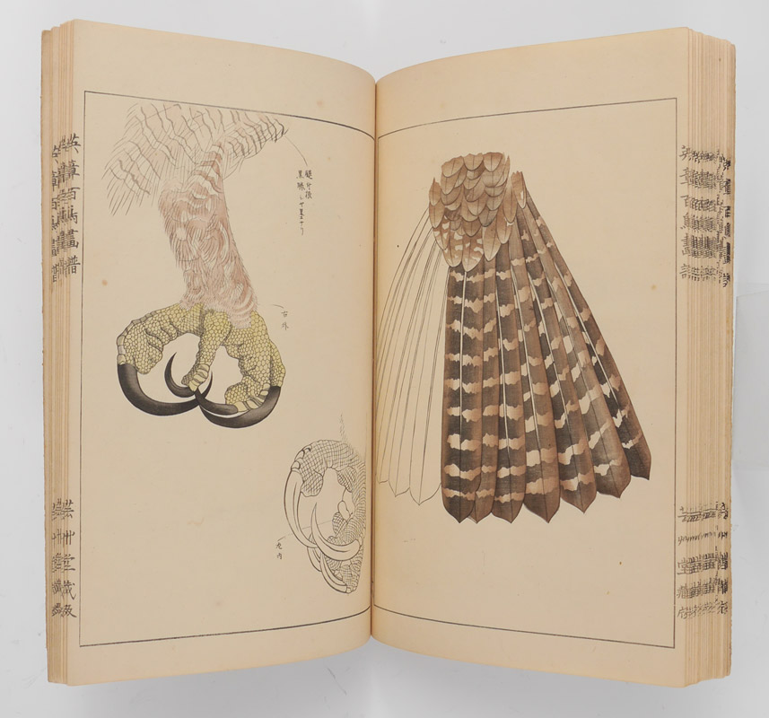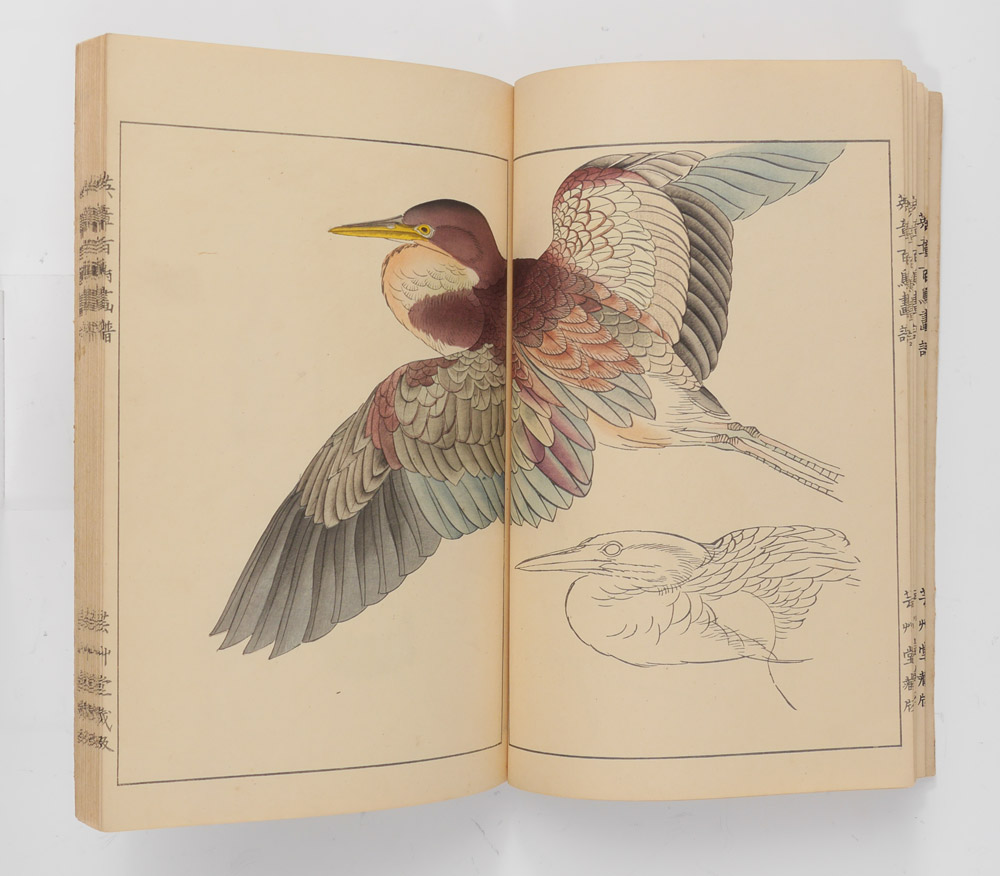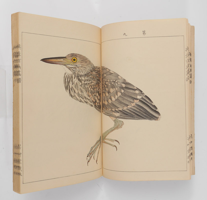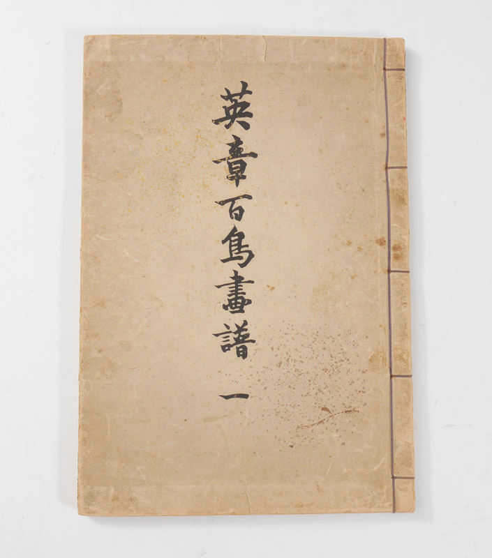 EISHO, Tsuchida, (Japanese): One volume of the Eisho Hyachuko Gafu, (Eisho's Album of 100 Varieties of Birds), color and uncolored woodblocks, 5 hole string binding, paper covers. 13'' x 9''.