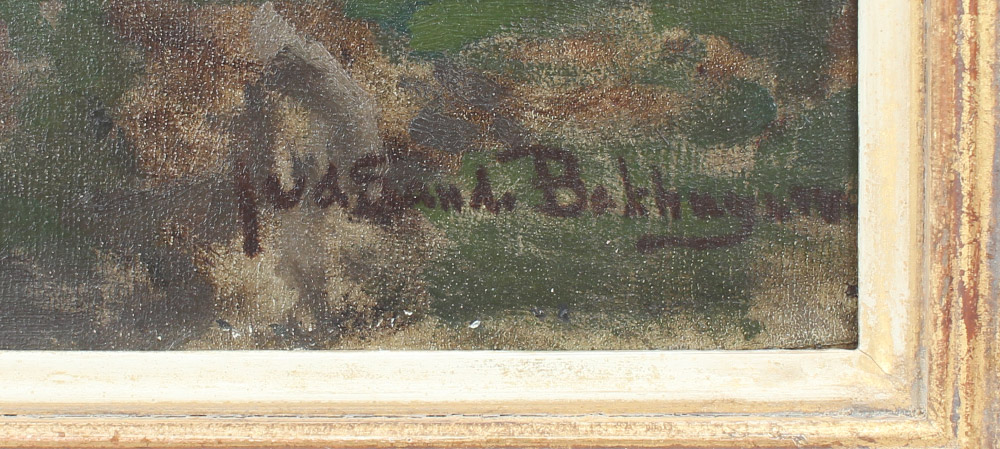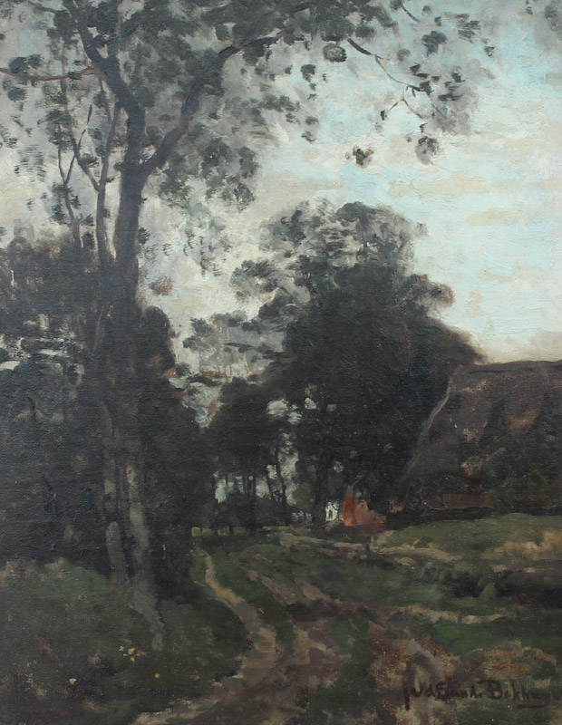 BAKHUIJZEN VAN DE SANDE, Julius Jacobus, (Dutch, 1835-1925): Along a Country Road, Oil/Canvas/Board, 16 3/4'' x 13'', signed lower right, PGL frame, 22.5'' x 18.5'', Christie's label verso.