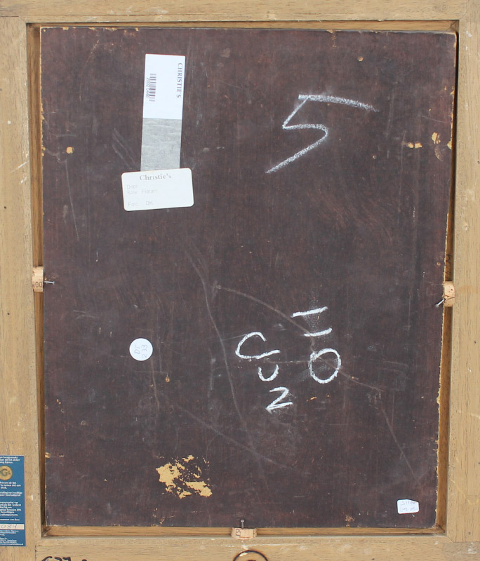 CONDITION: Laid down on wood panel, small abrasion lower right margin, several minor flecks of loss, pinhole upper right corner, frame shows wear, sold as is.