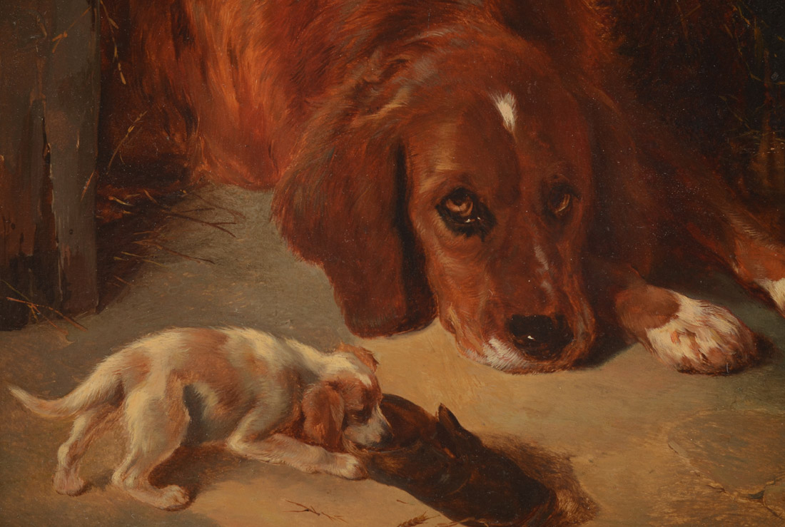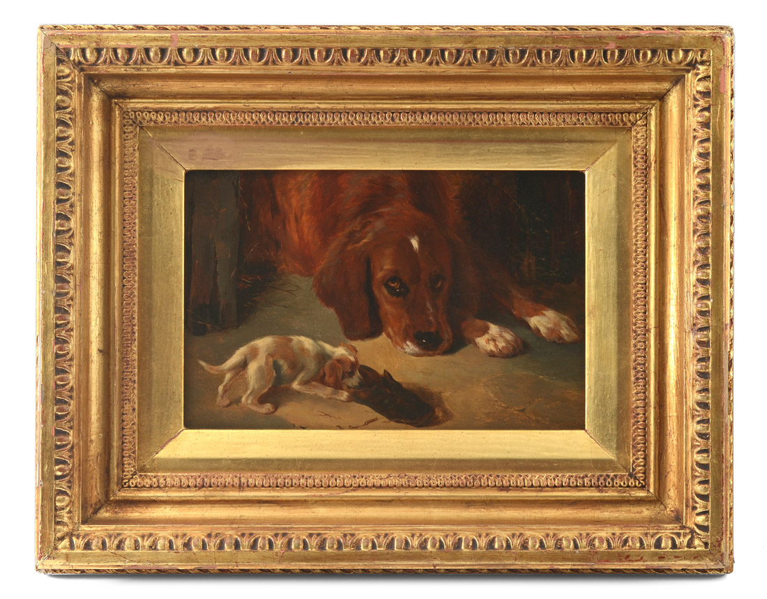 HORLOR, George, (British, 1923-1895): ''Playful Puppies'', Oil/Board, 8.25'' x 12.25'', no visible signature, several Christie's label and a James Julia label affixed verso, framed, 16'' x 20''.