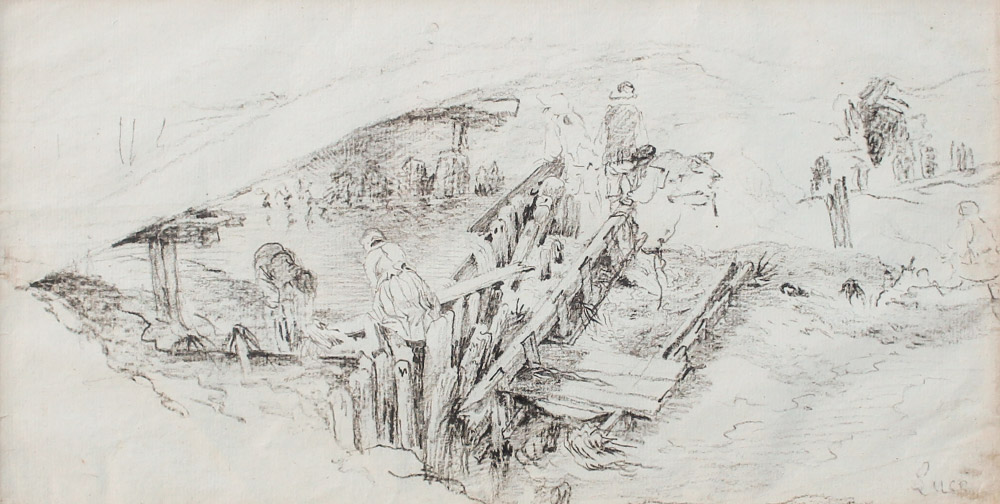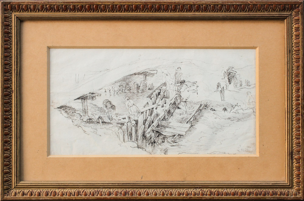 LUCE, Maximillian, (French, 1858-1941): Workers Constructing a Bridge, Pencil drawing, sight size 6'' x 11.75'', signed lower right, framed, 11.5'' x 17.5'', provenance affixed verso.