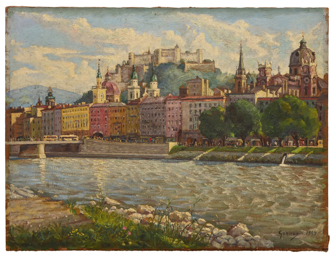 GARIKOW, Iwan, (Russian/American, 1918-1982): ''View of Salzburg'', Oil/Canvas, 31.5'' x 42'', signed lower right and dated 1949, old label affixed verso, unframed.