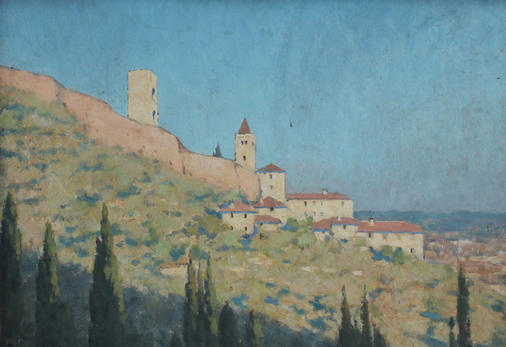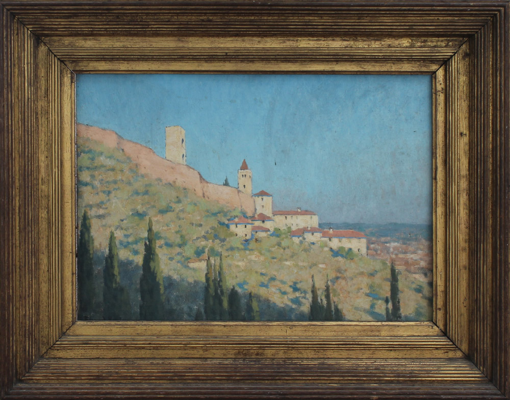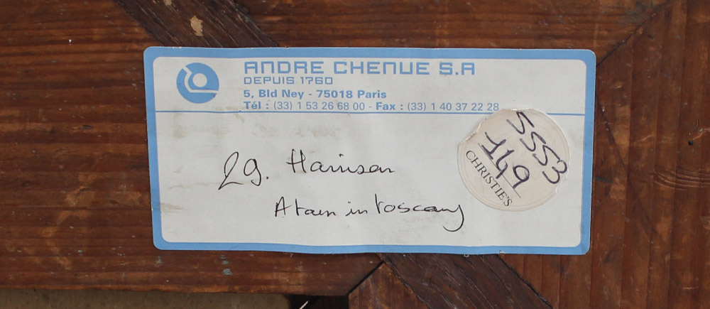 HARRISON, Bernard, (United Kingdom, 1893-1912): ''Rain in Tuscany'', Oil/Canvas Board, 15.5'' x 21.5'', signed lower left and dated 1925, gilded wood frame, 23'' x 29.5'', Christie's label affixed verso.