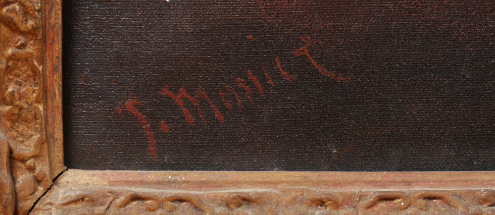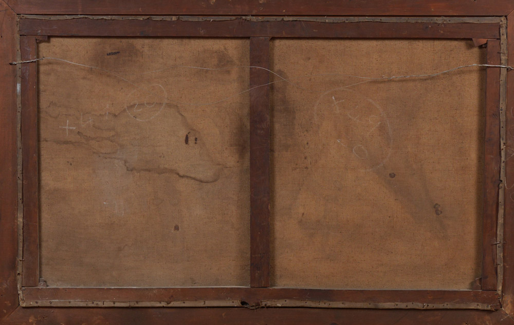 CONDITION: Scattered craquelure, needs cleaning, stretcher bar wear, several abrasions, frame shows wear, patches verso, sold as is.