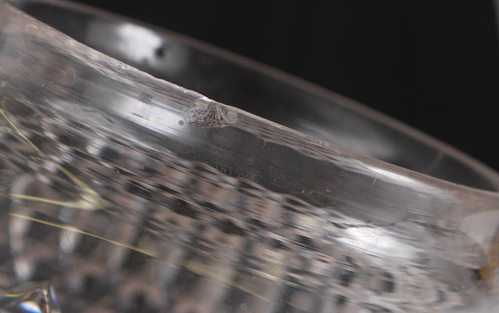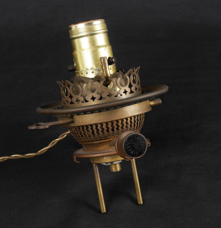 CONDITION: Chip to fitter rim on globe, looseness to globe.