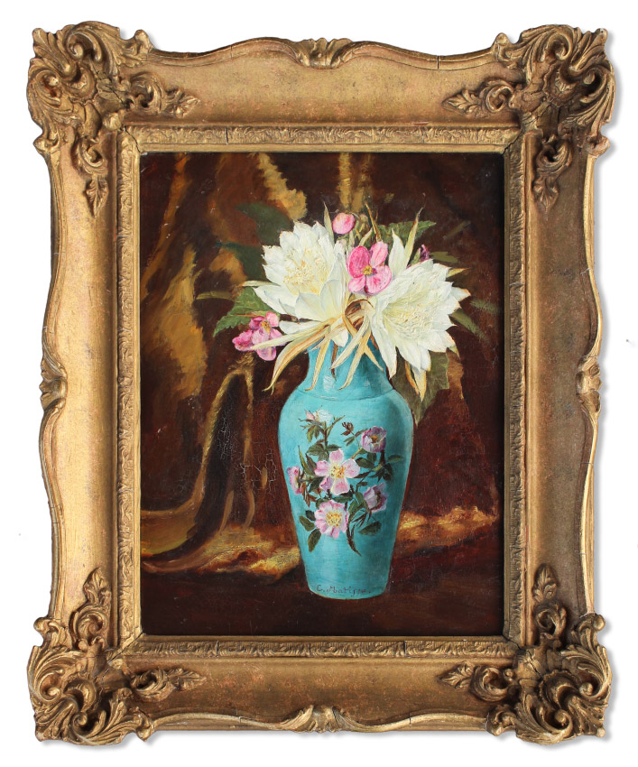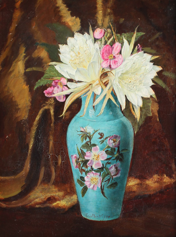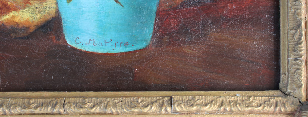 MATISSE, Camille, (French, 20th Century): Still Life of Flowers in a Blue Vase, Oil/Canvas, 15'' x 12'', signed on lower edge of the vase, gilded gesso frame, 20'' x 17''.