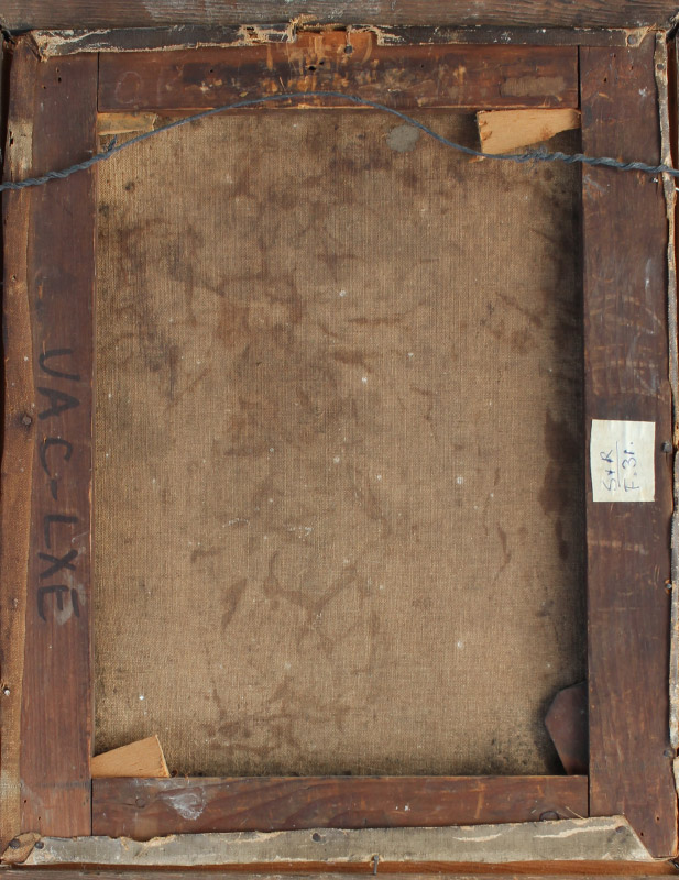 CONDITION: Scattered cracks throughout with several small flecks of loss, frame does show wear, sold as is.
