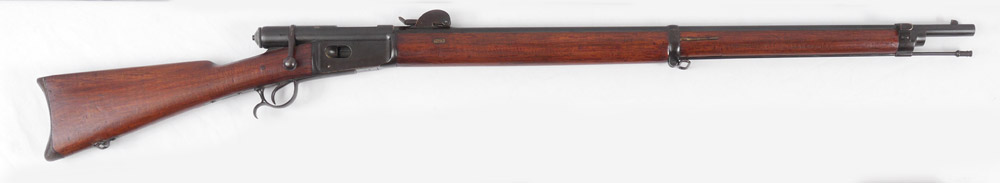 GERMAN MAUSER 1871/84 BOLT ACTION RIFLE: 1887 manufacture with Ambry mark, serial number 27500, walnut stock, 32'' barrel, single shot or tube magazine 8 shot. Walnut stock, overall 51 1/2'' long.