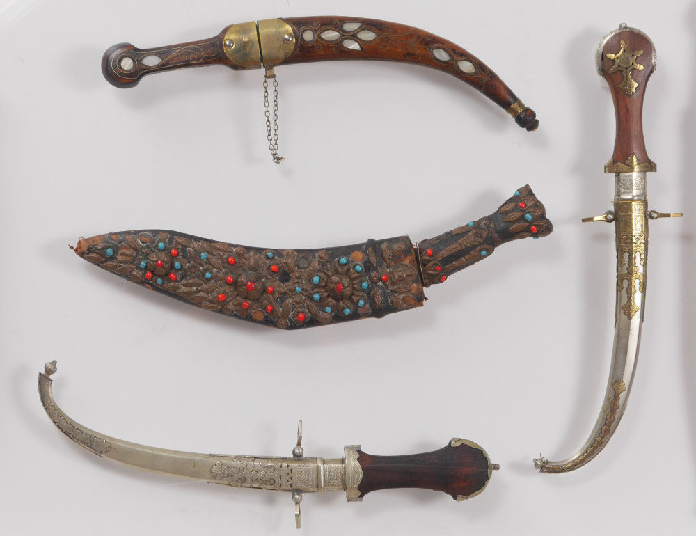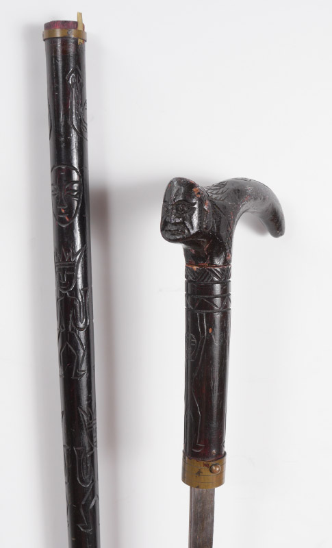 CONDITION: Daggers not examined and remain in sealed case, sword cane with chips and dings to cane. Please be aware of local laws regarding sword cane.