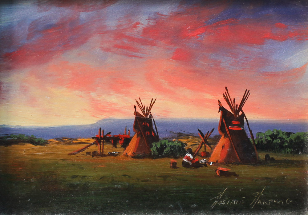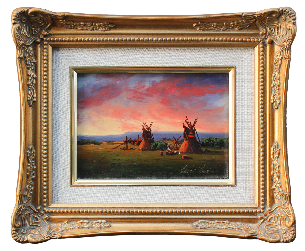 HARTWIG, Heinie, (American, 1937-): ''Sunset Over the Indian Village'', Oil/Masonite, sight size 5'' x 7'', signed lower right, framed, 9.5'' x 11.5''.