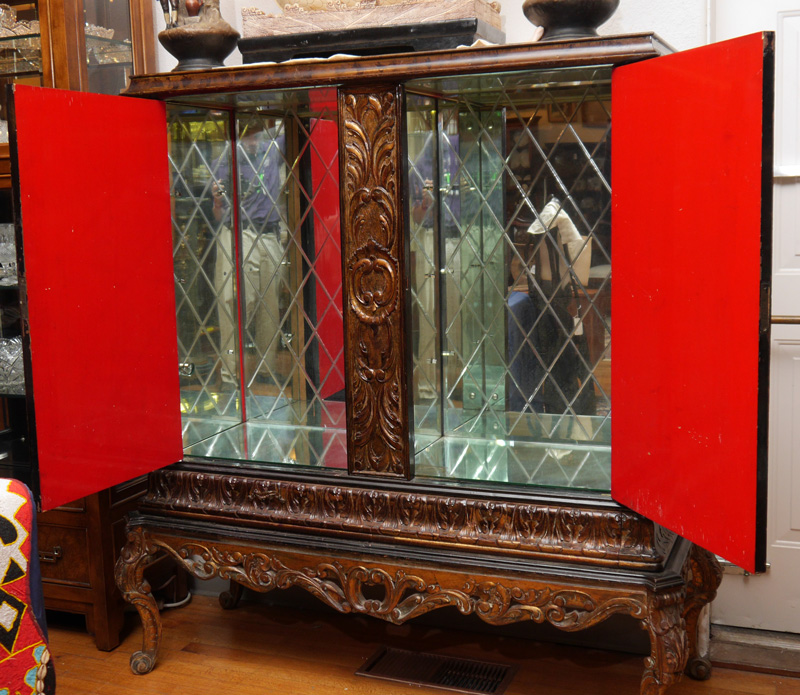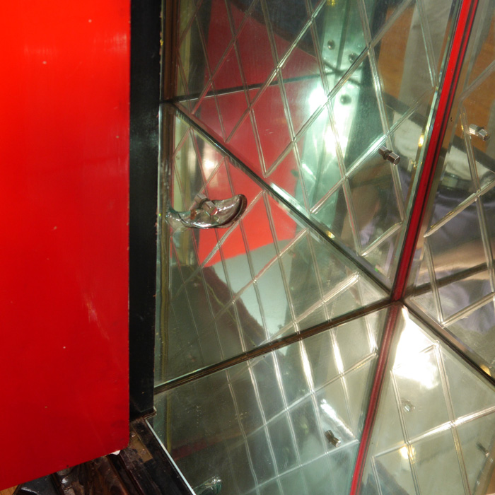 CONDITION: No shelves, cracks to mirrors, other wear consistent with age and use.