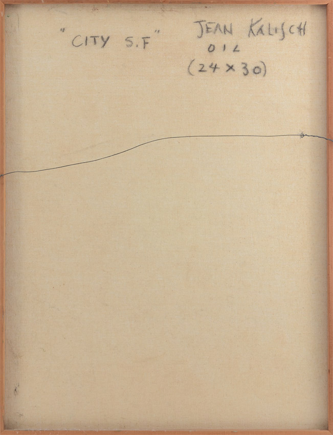 KALISCH, Jean, (American, 20th C): ''City San Francisco'', Oil/Canvas, 30'' x 20'', signed lower right, signed and titled on the canvas verso, framed 32'' x 26''.