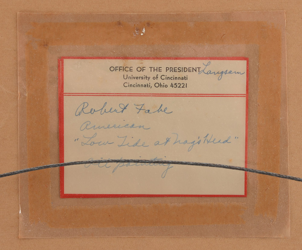 FABE, Robert, (American, 1917-2004): ''Low Tide at Nags Head'', Oil/Board, sight size 21.5'' x 27.5'', signed lower right, Office of the President University of Cincinnati, label affixed verso, framed, 28.5'' x 34.5''.