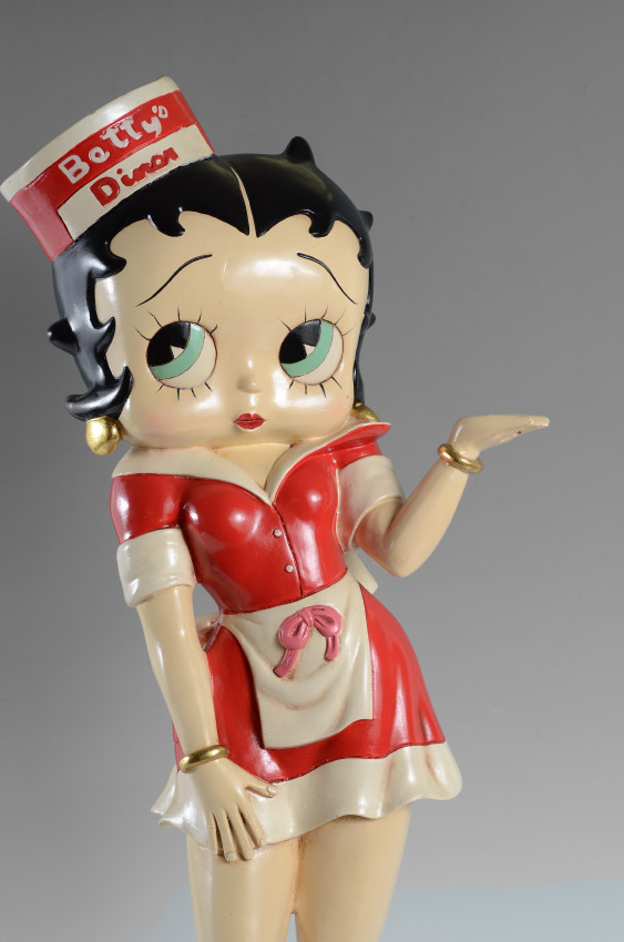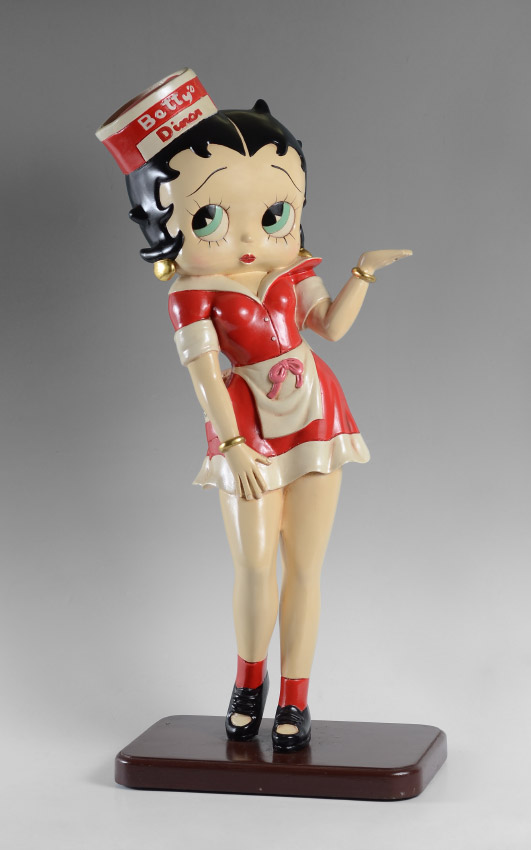 CAST RESIN BETTY BOOP ''BETTY'S DINER'' FIGURE: Figure of Betty Boop in waitress uniform, 36'' h. x 16'' x 10'', weighs approx. 13 lbs.