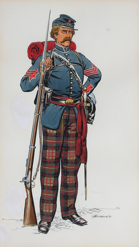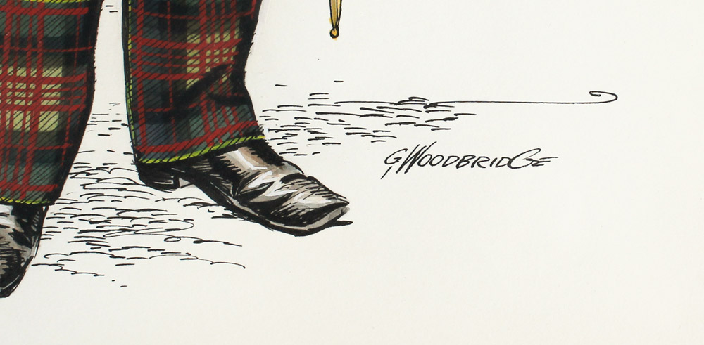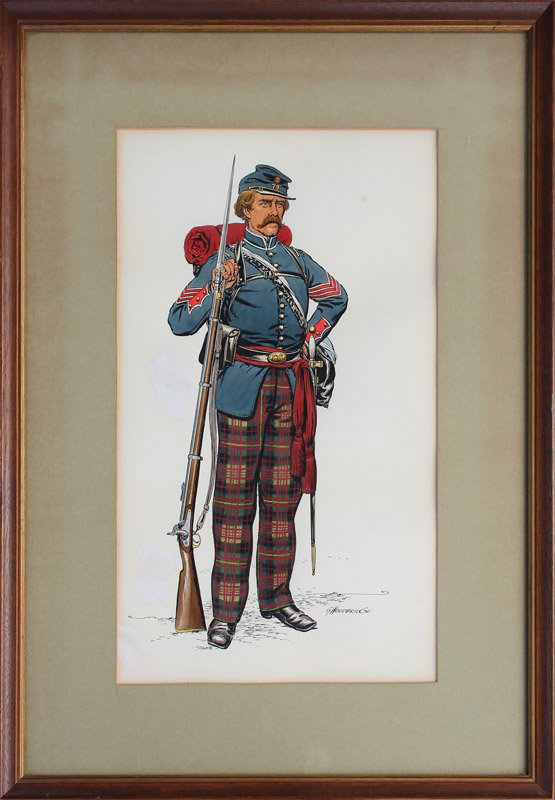 WOODBRIDGE, George, (American, 1930-2004): U.S. Calvary Uniform Illustration, Watercolor and Pen and Ink, sight size 16'' x 9.75'', signed lower right, framed, 23'' x 17''. George Woodbridge was most notably famous for being an illustrator for MAD Magazine.