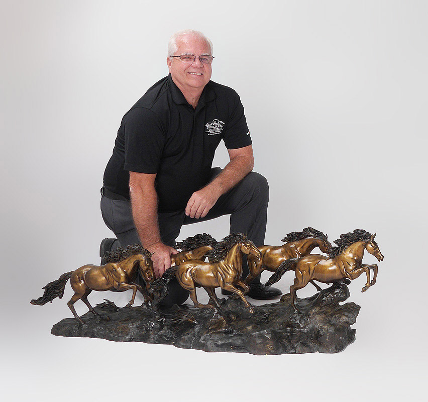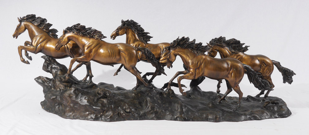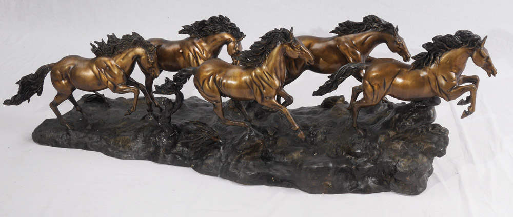 CARRIER-BELLEUSE, Albert, (French 1824-1887) After: Patinated metal sculpture of 5 horses running, signed, approx. 18'' h. x 58'' x 15 1/2''.
