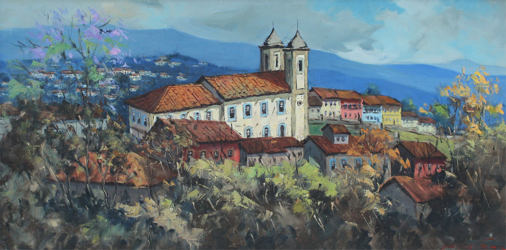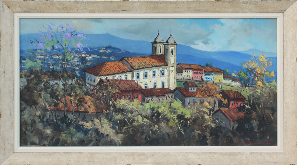 FREELAND, Cliff, (American, 20th C): ''Ouro Preto'', Brazilian Landscape, Oil/Canvas, 19.25'' x 38.5'', signed lower right, signed, titled and dated 1962 verso, framed, 24.25'' x 43.25''.
