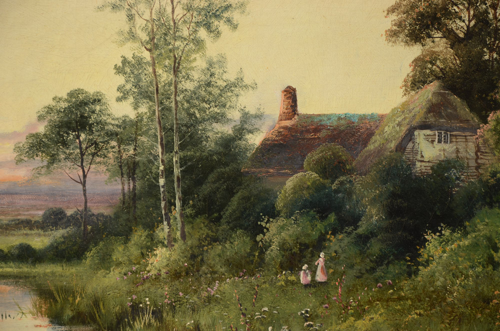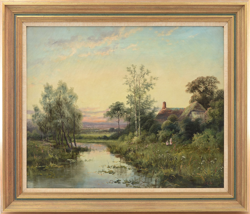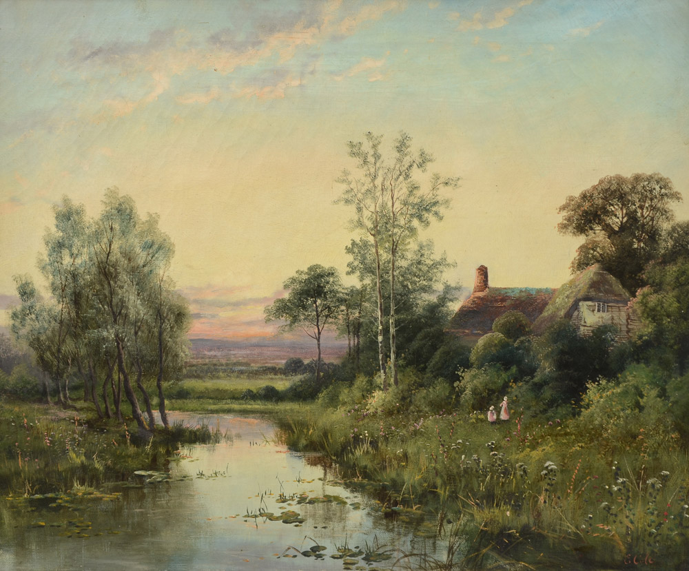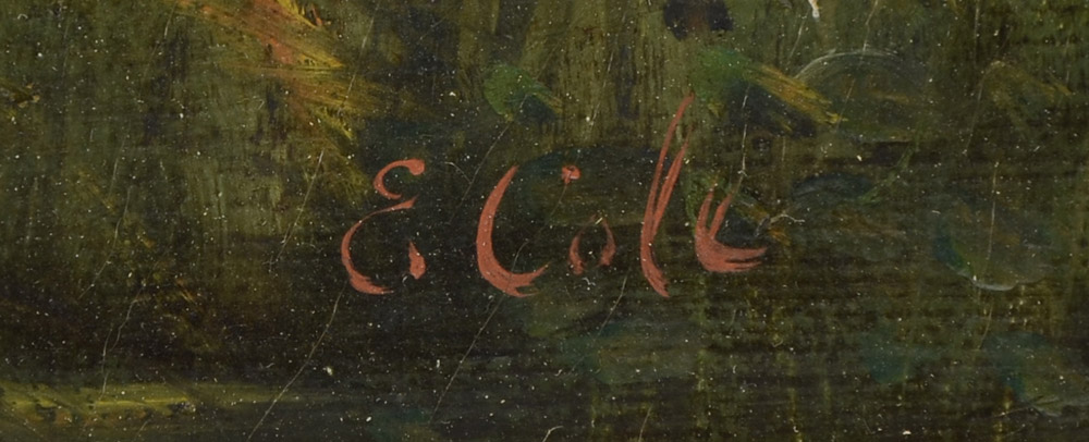 COLE, E., (British, 19th/20th Century): Country Stream with Figures, Oil/Canvas, 20'' x 24'', signed lower right, framed, 26'' x 30''.