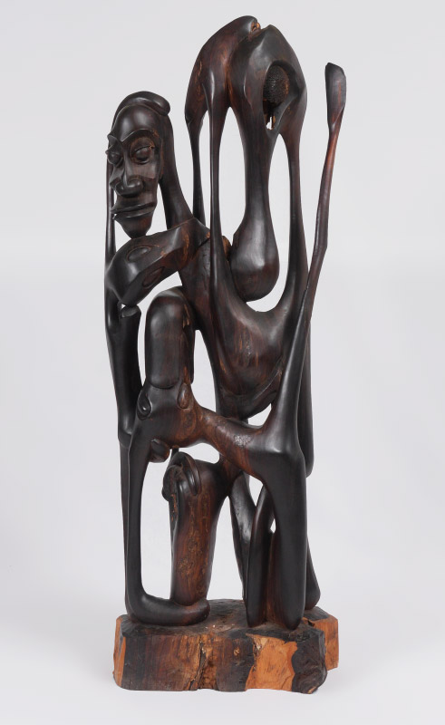 AFRICAN MAKONDE CARVED FIGURAL GROUP: With 3 dream or ghost figures, Makonde Tribe, Tanzania, overall measures 46 3/4'' h. x 17'' x 8''.