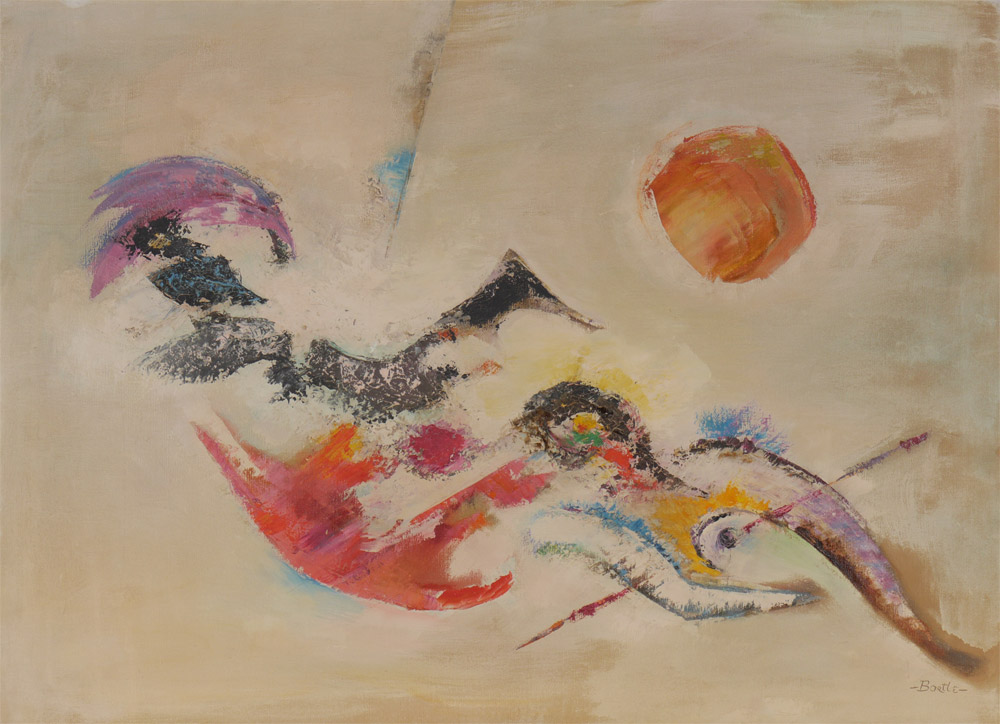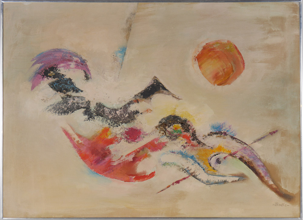BARTLE, Annette, (American, 20th C): Abstract Composition, Oil/Canvas, 25'' x 34'', signed lower right, thin edge metal frame, 25.25'' x 34.25''.