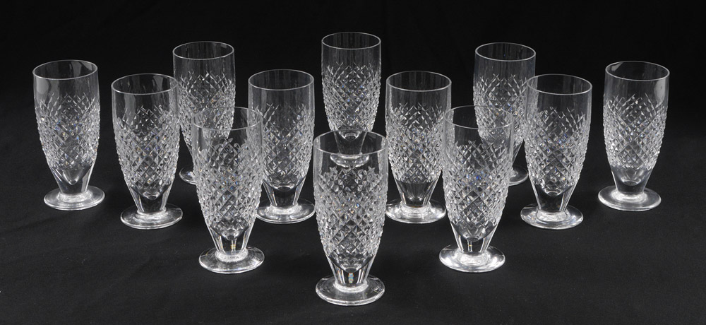 12 WATERFORD CRYSTAL ALANA ICED TEA GLASSES: 6.25''.