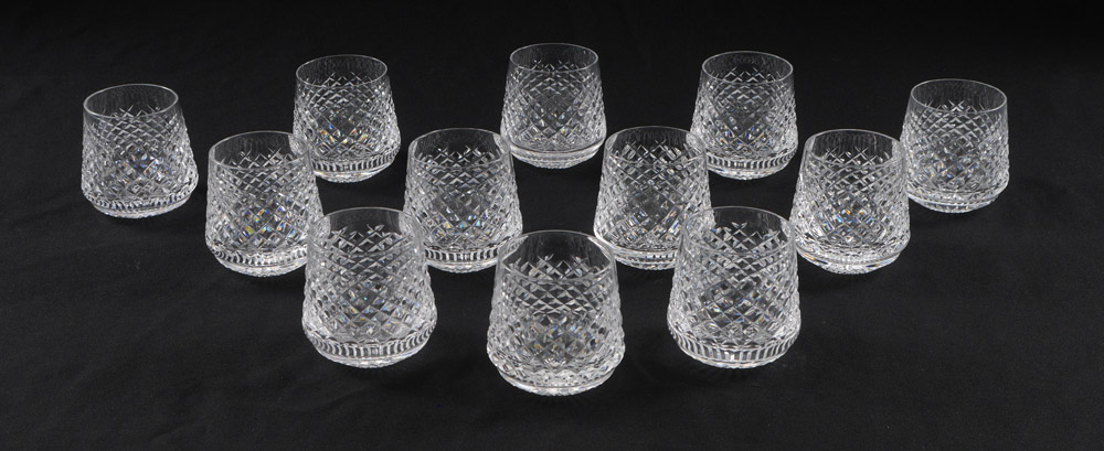 12 WATERFORD ''ALANA'' ROLY POLY GLASSES: 3.25'' tall.