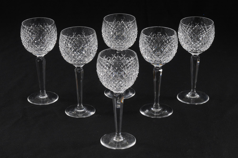 6 WATERFORD CRYSTAL ''ALANA'' WINE HOCKS: 7 1/4'' tall.