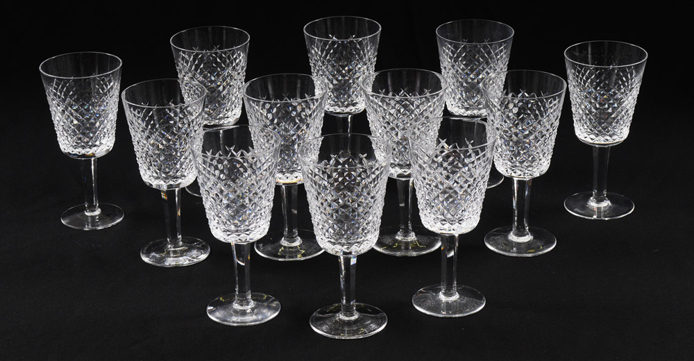12 WATERFORD ''ALANA'' WATER GOBLETS: 7'' tall.