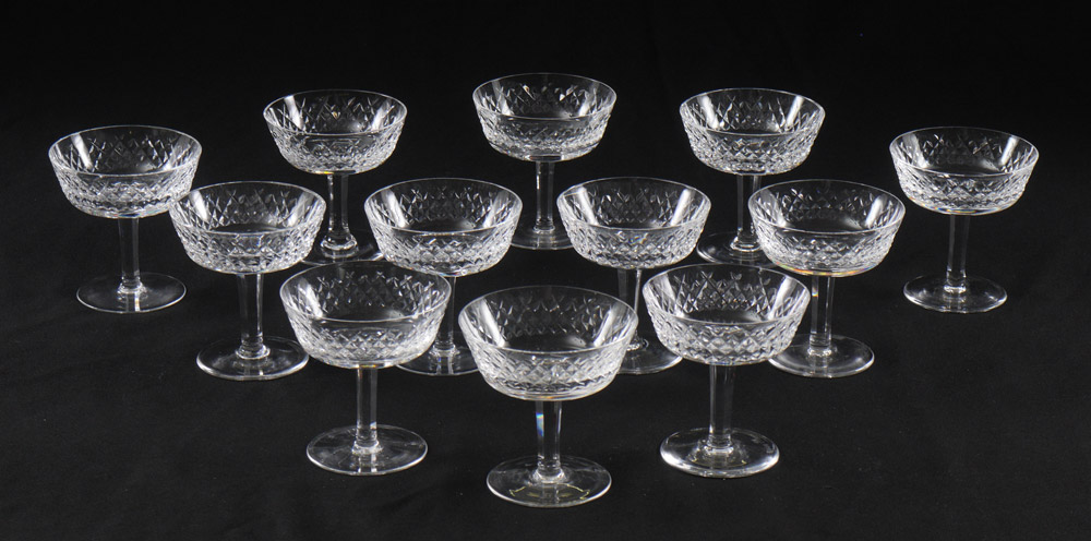 12 WATERFORD CRYSTAL ''ALANA'' TALL CHAMPAGNE SHERBETS: 4 1/8'' tall.