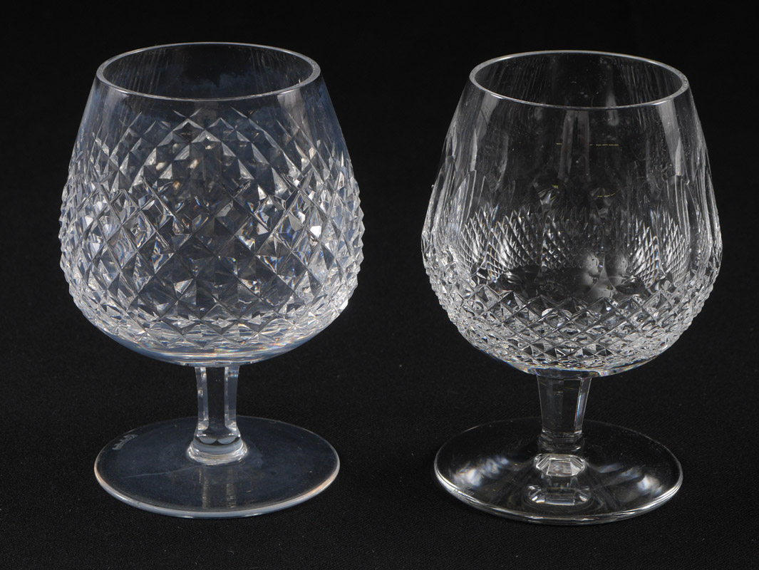8 WATERFORD CRYSTAL BRANDY GLASSES: 4 each of Alana and Colleen. 5 1/8'' tall.