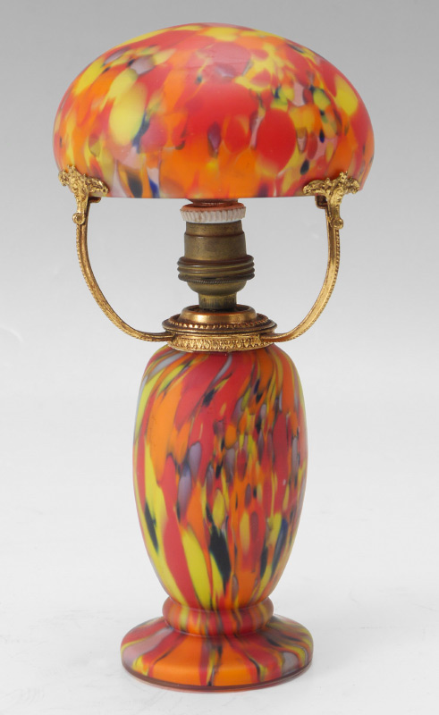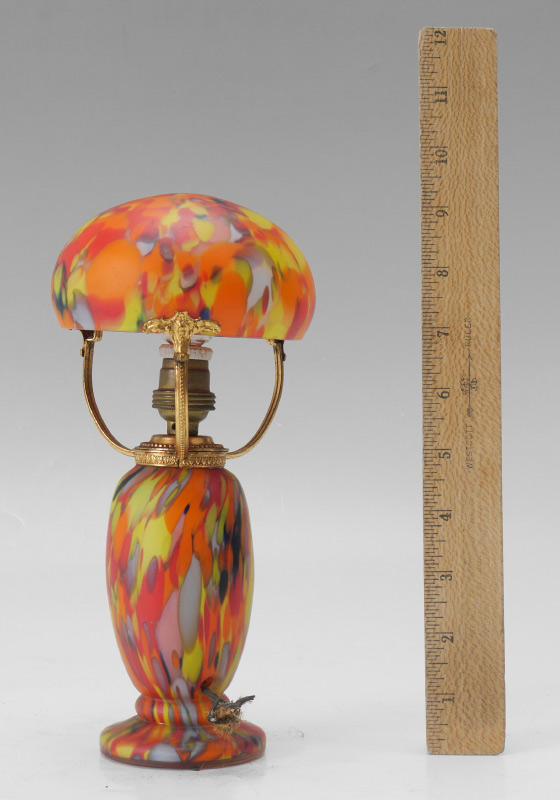 VINTAGE END OF DAY MILLEFIORI MINIATURE LAMP: 9'' tall. Mushroom shaped base and shade. Will need to be wired.