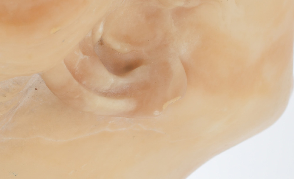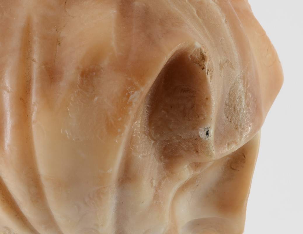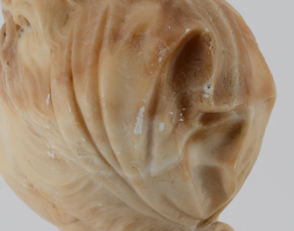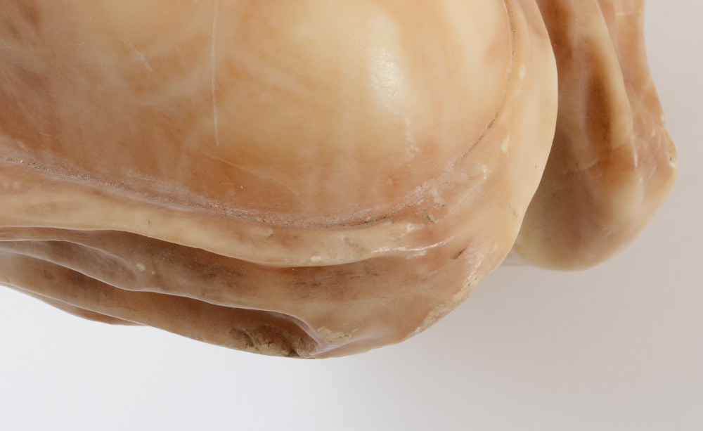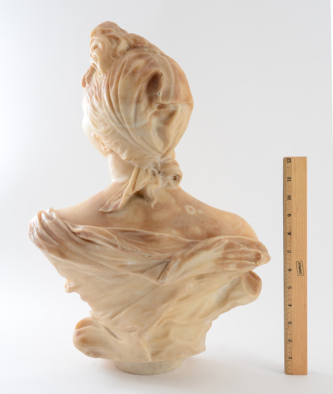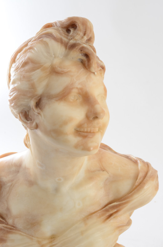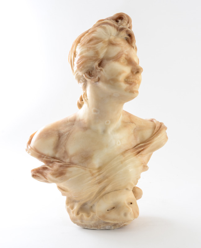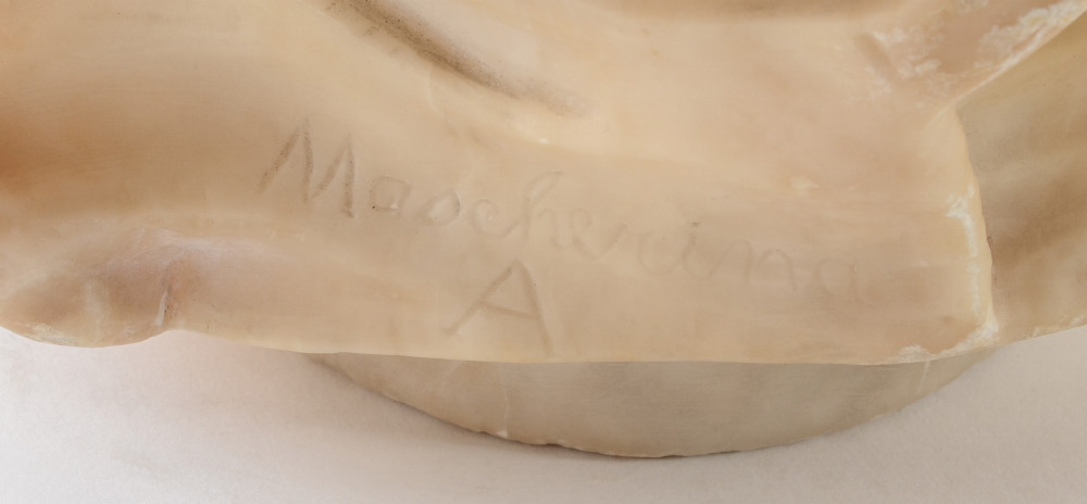 MASCHERINA SCULPTURE ALABASTER BEAUTY: Approx. 18.5''h. x 14'' x 8'', incised verso on the base Mascherina, with the monogram A.