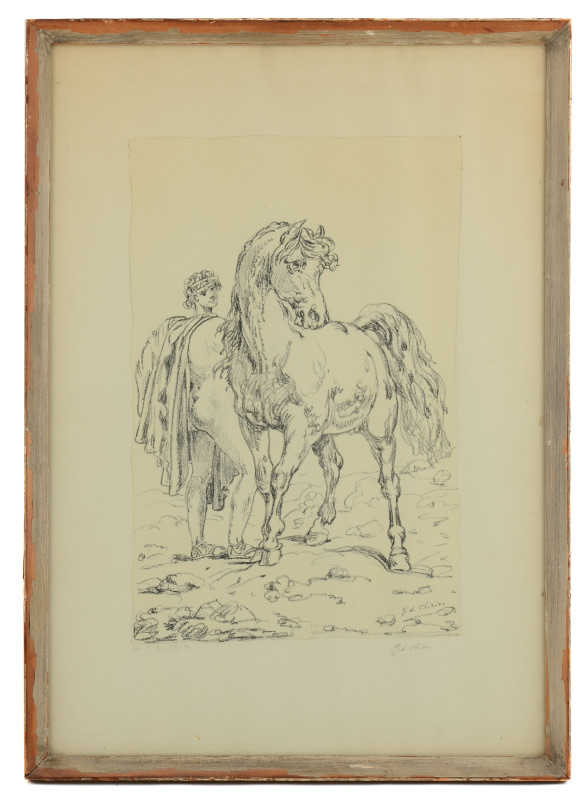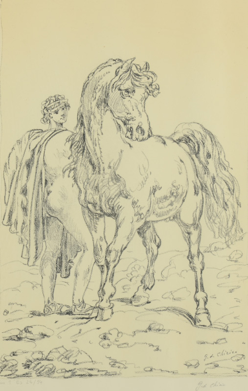 CHIRICO, Giorgio de (Italian, 1888-1978): Castore, from I CAVALLI, 1948, Lithograph, sight size 26 1/2'' x 18 1/2'', pencil signed lower right, numbered lower left 26/94, framed, 28 1/2'' x 20 1/2''.