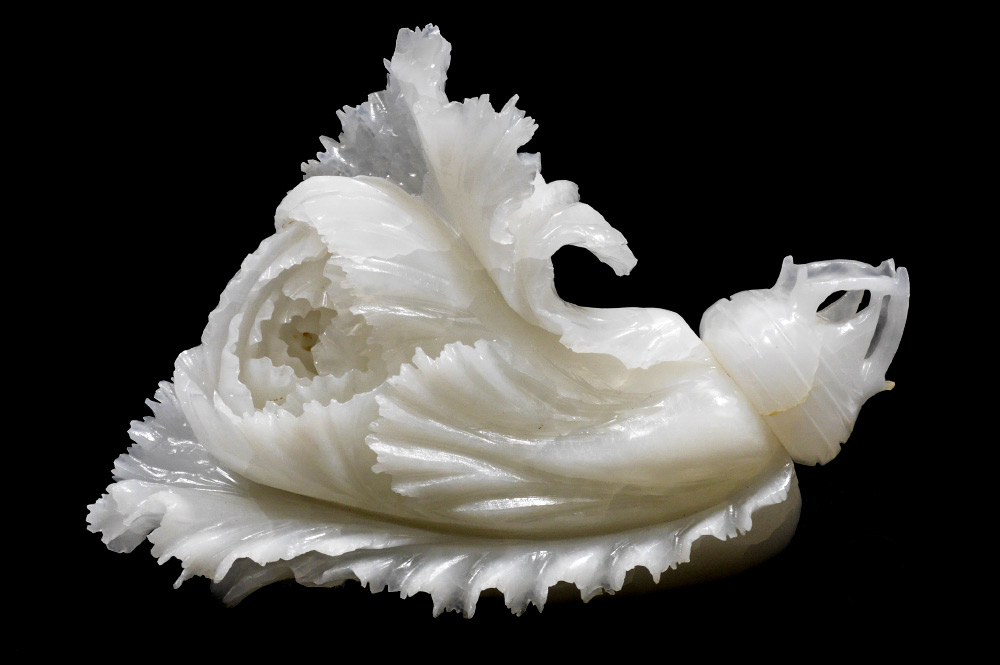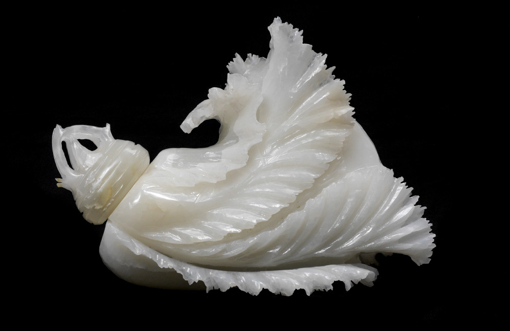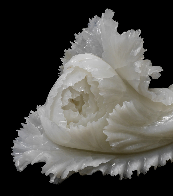 CARVED WHITE SERPENTINE CABBAGE: Chinese carved in the form of a cabbage, overall measures 2 1/2'' h x 10'' x 7 1/2''.