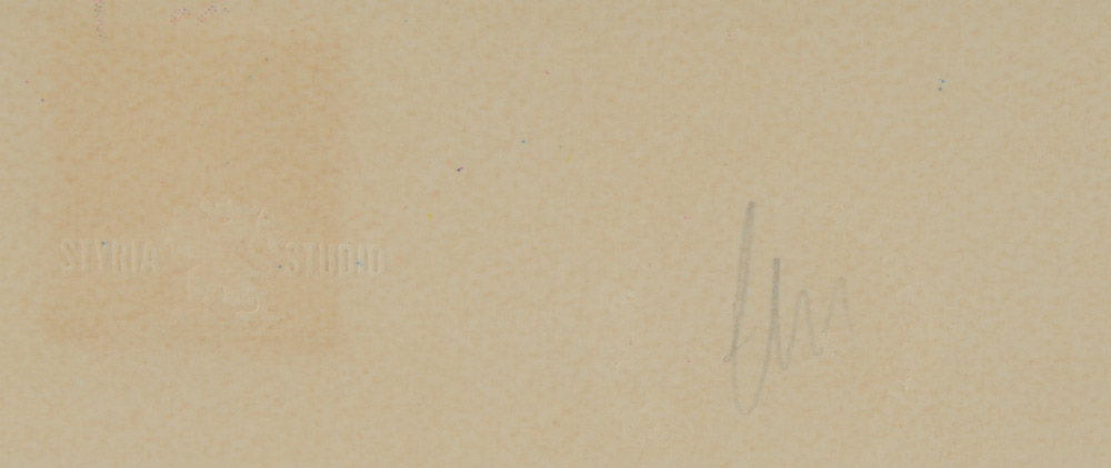 CONDITION: Visible tape glue stains, mild darkening and pale fading, sold as is.